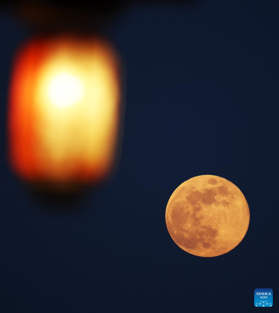 This drone photo taken on Jan. 3, 2026 shows the moon over Harbin City, northeast China's Heilongjiang Province. The first super moon of 2026, characterized by the moon's unusually close proximity to Earth, resulting in a larger and brighter appearance, showed in the sky on Saturday. (Xinhua/Zhang Tao)