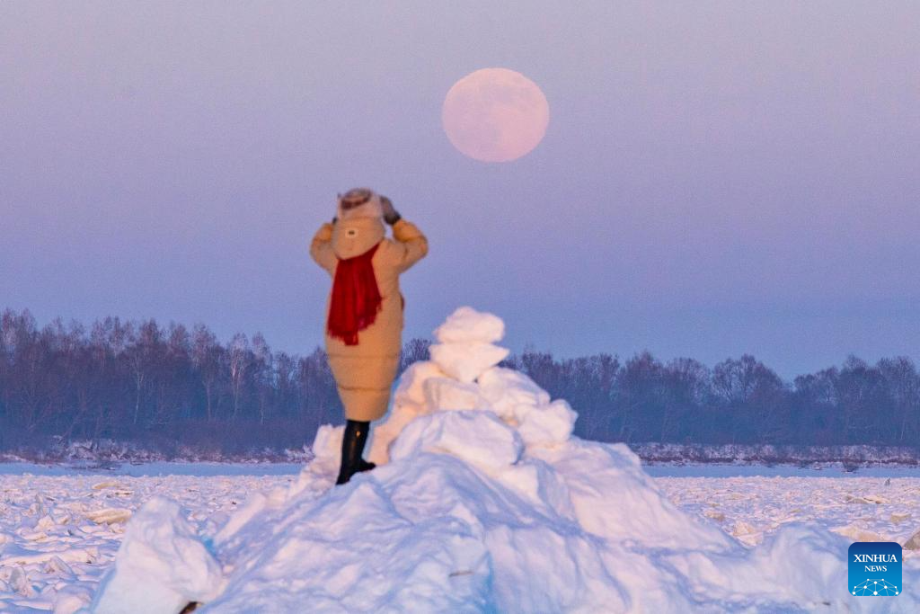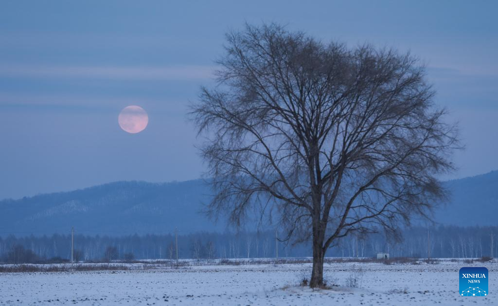 This photo taken on Jan. 3, 2026 shows the moon over Jiayin County, Yichun City, northeast China's Heilongjiang Province. The first super moon of 2026, characterized by the moon's unusually close proximity to Earth, resulting in a larger and brighter appearance, showed in the sky on Saturday. (Photo by Li Shaojun/Xinhua)