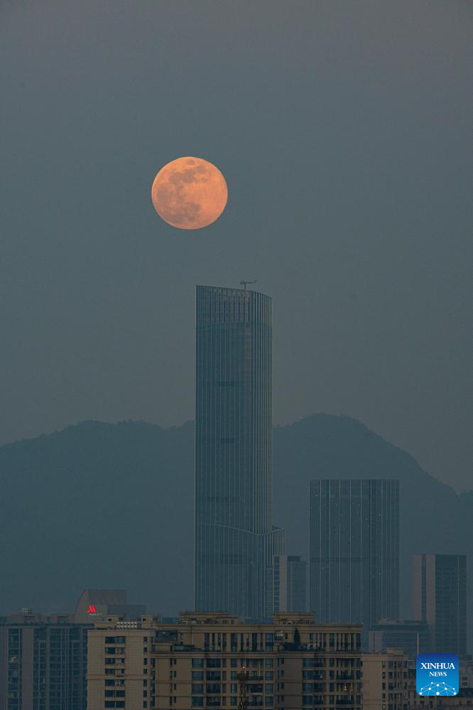 This photo taken on Jan. 3, 2026 shows the moon over Wenzhou City, east China's Zhejiang Province. The first super moon of 2026, characterized by the moon's unusually close proximity to Earth, resulting in a larger and brighter appearance, showed in the sky on Saturday. (Photo by Su Qiaojiang/Xinhua)