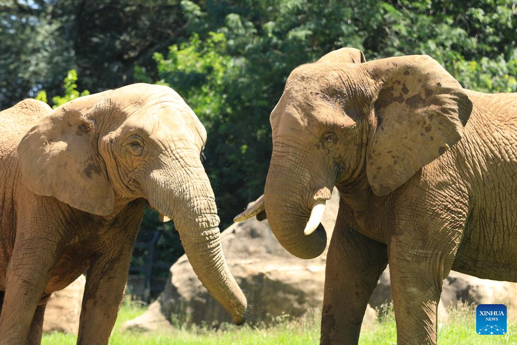 This photo taken on Jan. 2, 2026 shows African elephants at Johannesburg Zoo in Johannesburg, South Africa. Founded in 1904, the zoo is situated in the leafy northern suburb of Johannesburg. It houses about 2,000 animals. (Xinhua/Chen Wei)