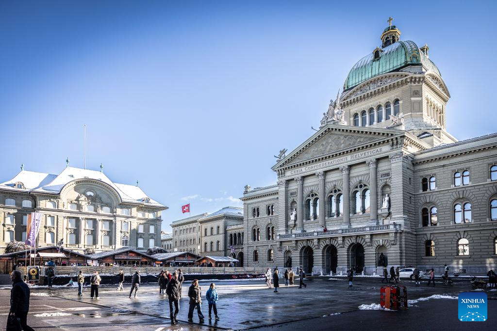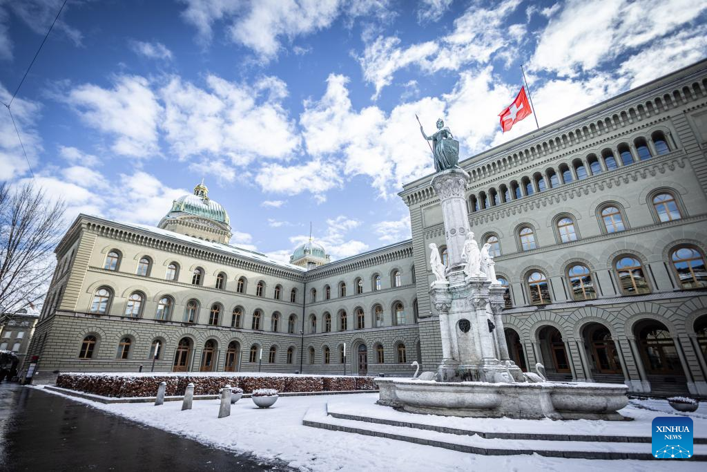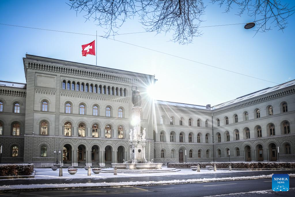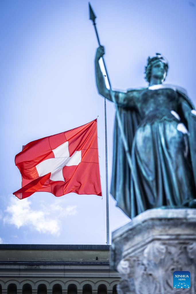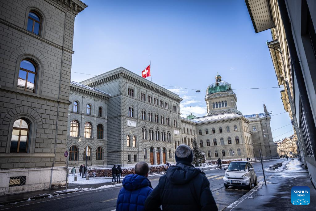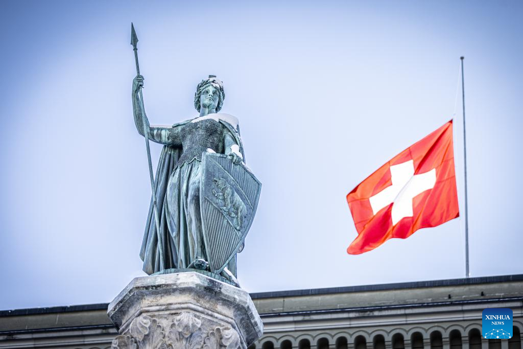President of the Swiss Confederation Guy Parmelin said flags at the Federal Palace would stay at half-mast for five days during a press conference on Thursday. (Photo by Liu Sheng/Xinhua)