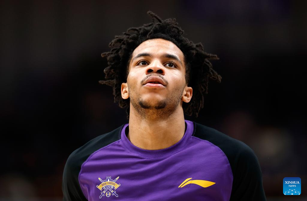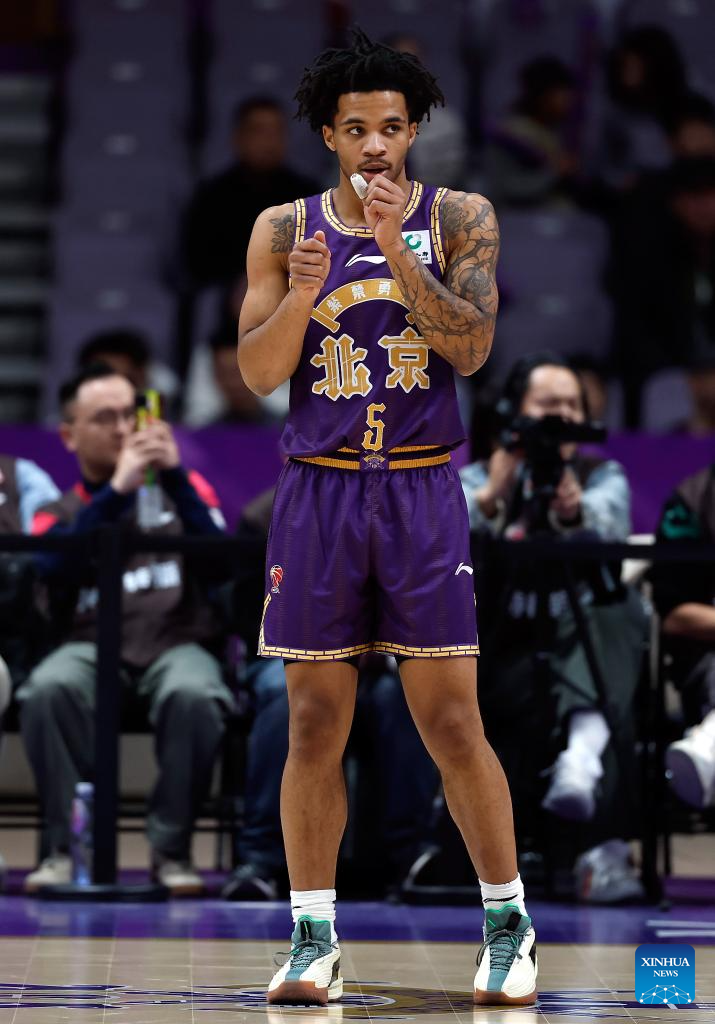 Jameer Nelson Jr. of Beijing Royal Fighters reacts before the 10th round regular season match between Beijing Royal Fighters and Guangdong Southern Tigers at the 2025-2026 Chinese Basketball Association (CBA) league in Beijing, China, Jan. 3, 2026. (Xinhua/Wang Lili)