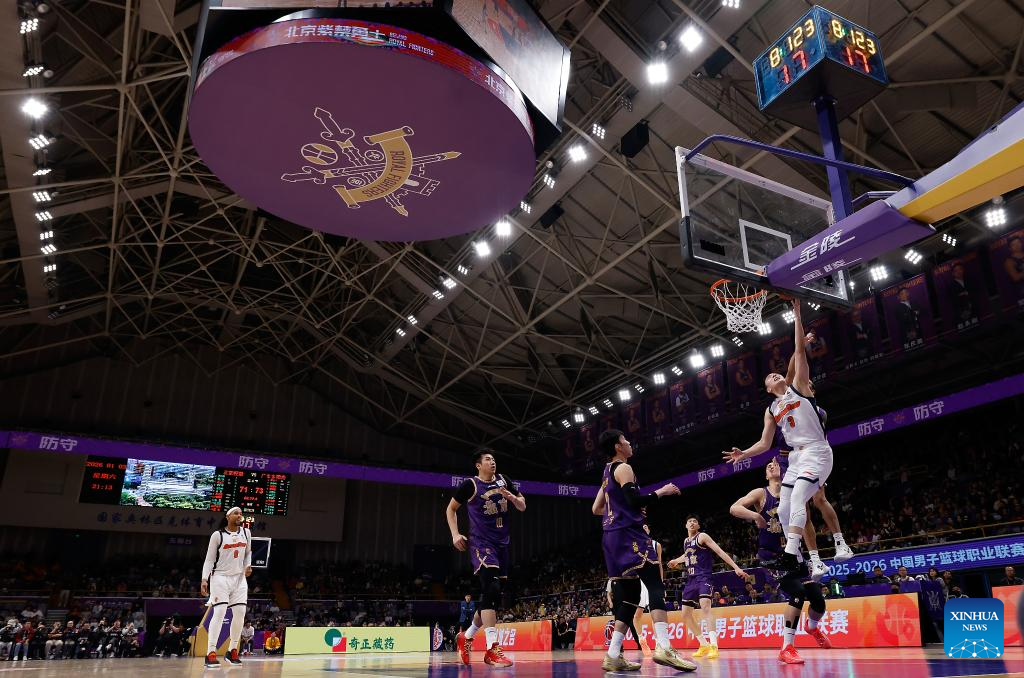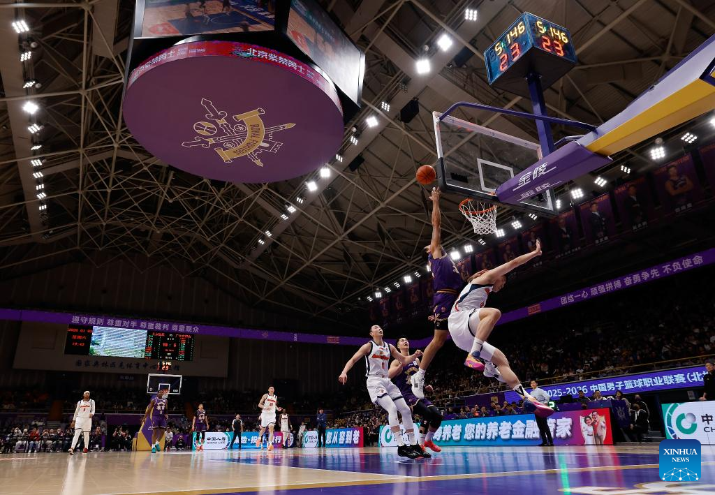 Grant Riller (2nd R) of Beijing Royal Fighters goes for a basket during the 10th round regular season match at the 2025-2026 Chinese Basketball Association (CBA) league in Beijing, China, Jan. 3, 2026. (Xinhua/Wang Lili)