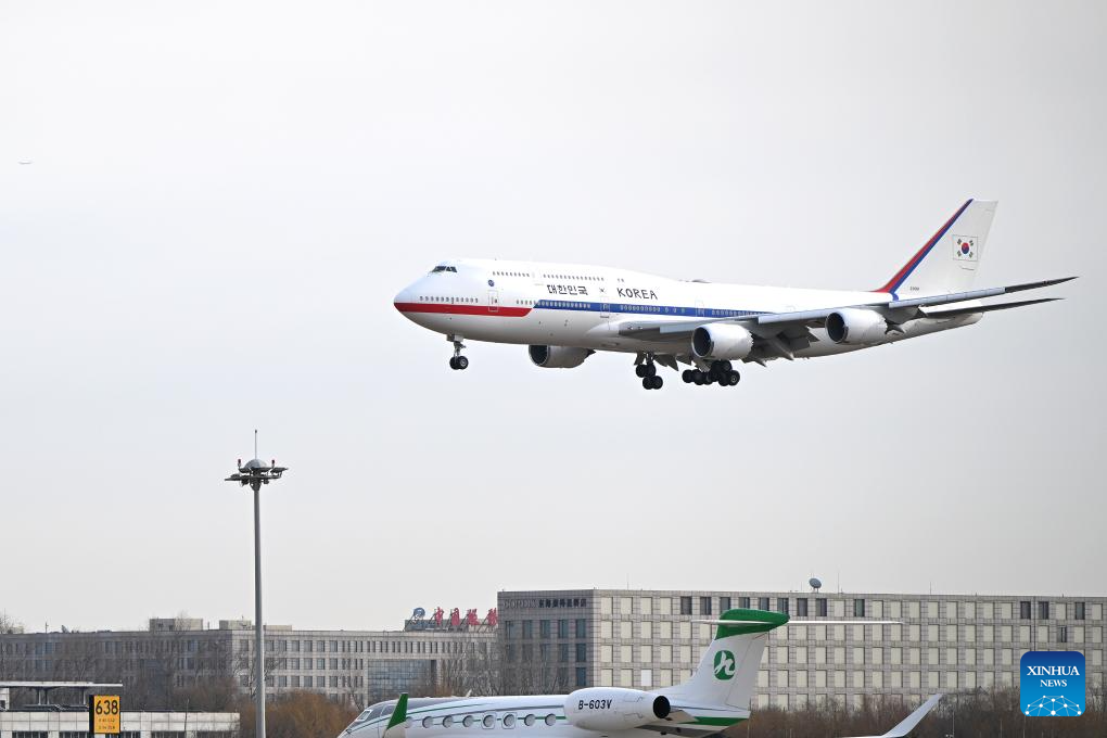 The plane carrying President of the Republic of Korea Lee Jae Myung arrives in Beijing, capital of China, Jan. 4, 2026. At the invitation of Chinese President Xi Jinping, President of the Republic of Korea Lee Jae Myung arrived in Beijing on Sunday for a state visit to China from Jan. 4 to 7. (Xinhua/Dai Tianfang)