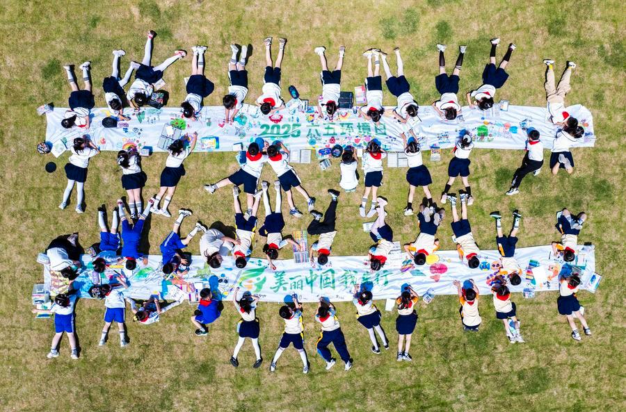 An aerial drone photo taken on Jan. 6, 2025 shows a partial view of the Shichengzi photovoltaic power station in Hami, northwest China's Xinjiang Uygur Autonomous Region. (Photo by Feng Yang/Xinhua)An aerial drone photo taken on Jan. 9, 2025 shows police officers patrolling on the ice-covered Qinghai Lake in Gangcha County of Haibei Tibetan Autonomous Prefecture, northwest China's Qinghai Province. (Xinhua/Zhang Long)An aerial drone photo taken on Jan. 12, 2025 shows "Shenlan 2" (R), China's self-developed large deep-sea fish farming equipment, cooperating with an aquaculture vessel to collect fish at a fish farming experimental area of Qingdao, east China's Shandong Province. (Xinhua/Li Ziheng)An aerial drone photo taken on Jan. 14, 2025 shows bullet trains at a maintenance base in Changsha, central China's Hunan Province. China's 2025 Spring Festival travel rush began on this day. (Xinhua/Chen Zhenhai)An aerial drone photo taken on Jan. 22, 2025 shows people writing Spring Festival couplets in Guitou Village of Daoxian County in Yongzhou, central China's Hunan Province. (Photo by Jiang Keqing/Xinhua)A drone photo taken on Jan. 29, 2025 shows folk artists performing a molten iron firework show in Nanyue District of Hengyang, central China's Hunan Province. (Photo by Cao Zhengping/Xinhua)An aerial drone photo taken on Feb. 9, 2025 shows the snow-covered Helan Mountains seen from an amusement park in Yinchuan, northwest China's Ningxia Hui Autonomous Region. (Xinhua/Feng Kaihua)An aerial drone photo taken on Feb. 22, 2025 shows a train running past blooming plum flowers in Shushan District of Hefei, east China's Anhui Province. (Photo by Chen Sanhu/Xinhua)An aerial drone photo taken on Feb. 27, 2025 shows the Sakyamuni Pagoda of Fogong Temple in Yingxian County, north China's Shanxi Province. (Xinhua/Zhang Keren)An aerial drone photo taken on March 8, 2025 shows farmers planting aquatic plants in a crayfish field of a demonstration base in Xuyi County, east China's Jiangsu Province. (Photo by Gu Jihong/Xinhua)An aerial drone photo taken on April 5, 2025 shows a view of the Mutianyu section of the Great Wall at dawn in Beijing, capital of China. (Xinhua/Chen Yehua)An aerial drone photo taken on May 5, 2025 shows rescuers carrying out search and rescue operations after a boat capsizing accident in Qianxi City, southwest China's Guizhou Province. (Xinhua/Liu Xu)A drone photo taken on May 8, 2025 shows agricultural machinery ready to sow soybeans in a dryland of a farming company under the Beidahuang Group in Shuangyashan, northeast China's Heilongjiang Province. (Xinhua/Wang Song)A drone photo taken on May 20, 2025 shows the scenery at a salt lake in Yuncheng, north China's Shanxi Province. (Xinhua/Zhan Yan)An aerial drone photo taken on May 22, 2025 shows rescue work underway after a landslide in Qingyang Village of Guowa Township in Dafang County of Bijie, southwest China's Guizhou Province. (Xinhua/Yang Wenbin)An aerial drone photo taken on June 4, 2025 shows primary school students painting during an environmental protection-themed event in Xinghua City, east China's Jiangsu Province. (Photo by Zhou Shegen/Xinhua)An aerial drone photo taken on June 8, 2025 shows a worker harvesting brine shrimps on a salt lake in Yuncheng, north China's Shanxi Province. (Photo by Jiang Hua/Xinhua)An aerial drone photo taken on June 14, 2025 shows herdsmen driving their livestock through the night on the way to a summer pasture on Ar Horqin Grassland, Chifeng, north China's Inner Mongolia Autonomous Region. (Xinhua/Ma Jinrui)A drone photo taken on July 3, 2025 shows a fleet of the Chinese People's Liberation Army (PLA) Navy led by the aircraft carrier Shandong arriving in Hong Kong, south China. (Photo by Pu Haiyang/Xinhua)An aerial drone photo taken on July 5, 2025 shows tourists enjoying themselves at a water amusement park in Huzhou, east China's Zhejiang Province. (Photo by Wu Zheng/Xinhua)A drone photo taken on July 10, 2025 shows a statue of Chinese navigator and explorer Zheng He with sailboats participating in a sea cruising event in the background near a dock in Qingdao, east China's Shandong Province. The year 2025 marked the 20th anniversary of the establishment of the Maritime Day of China and the 620th anniversary of Zheng He's maritime voyages. (Xinhua/Li Ziheng)A drone photo taken on July 10, 2025 shows two mausoleums of the Xixia Imperial Tombs in northwest China's Ningxia Hui Autonomous Region. China's Xixia Imperial Tombs were officially added to the UNESCO World Heritage List on July 11, 2025 during the 47th session of the World Heritage Committee held in Paris, France. The inscription brings the total number of World Heritage sites in China to 60. (Xinhua/Wang Peng)An aerial drone photo taken on July 18, 2025 shows a section of the Tarim Desert Highway and the shelterbelt planted along it in northwest China's Xinjiang Uygur Autonomous Region. The 522-km highway runs across the Taklimakan Desert, the world's second-largest shifting sand desert. (Xinhua/Meng Tao)An aerial drone photo taken on July 30, 2025 shows tourists visiting the Heidu Mountain scenic spot in Lenghu Town, Mangya City of Haixi Mongolian and Tibetan Autonomous Prefecture of northwest China's Qinghai Province. (Xinhua/Qi Zhiyue)An aerial drone photo taken on July 31, 2025 shows a view of a jasmine garden in Hengzhou, south China's Guangxi Zhuang Autonomous Region. (Xinhua/Huang Xiaobang)■