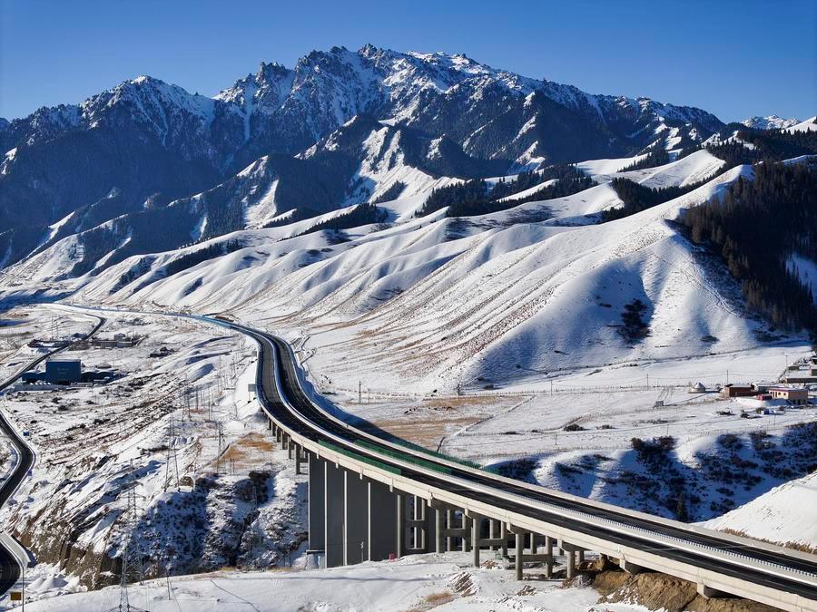 An aerial drone photo taken on Aug. 19, 2025 shows a drone delivering a parcel over Chaohu Lake in Hefei, east China's Anhui Province. (Xinhua/Huang Bohan)An aerial drone photo taken on Aug. 23, 2025 shows farmers harvesting marigold flowers in Tengchong, southwest China's Yunnan Province. (Photo by Gong Zujin/Xinhua)An aerial drone photo taken on Sept. 15, 2025, shows a first-stage propulsion system test for the Tianlong-3 liquid carrier rocket conducted on an offshore launch pad at the Haiyang Oriental Aerospace Port in east China's Shandong Province. (Xinhua)An aerial drone photo taken on Sept. 26, 2025 shows the Huajiang Grand Canyon Bridge in southwest China's Guizhou Province. The bridge, soaring 625 meters above the Beipan River in Guizhou's mountainous terrain, is the world's highest bridge. It opened to traffic on Sept. 28, 2025. (Xinhua/Ou Dongqu)A drone photo taken on Oct. 21, 2025 shows harvesters harvesting rice in a paddy field, with a high-speed train in the background, in Hangzhou, east China's Zhejiang Province. (Xinhua/Xu Yu)An aerial drone photo taken on Oct. 23, 2025 shows a staff member transporting newly-picked apples at an orchard in Alaer City, northwest China's Xinjiang Uygur Autonomous Region. (Xinhua/Cai Yang)An aerial drone photo taken on Oct. 24, 2025 shows vehicles running on a road lined by trees at Guankou Village of Qianjiang District in Chongqing, southwest China. (Photo by Yang Min/Xinhua)An aerial drone photo taken on Nov. 8, 2025 shows a view of China's Huangyan Dao national nature reserve in the South China Sea. The official website of China's central government (www.gov.cn) on Sept. 10, 2025 posted the State Council's approval of the request by the Ministry of Natural Resources for the establishment of the Huangyan Dao national nature reserve, agreeing to the establishment of the nature reserve. (Xinhua/Bei He)A drone photo shows egrets foraging at a reservoir in the Kazak Autonomous County of Aksay in northwest China's Gansu Province, Nov. 9, 2025. (Photo by Gao Hongshan/Xinhua)A drone photo taken on Nov. 9, 2025 shows folk artists performing with traditional fish-shaped lanterns in Chengkan Village, Huangshan, east China's Anhui Province. (Xinhua/Cao Li)A drone photo taken on Nov. 13, 2025 shows a view of the Himalayas in Tingri County of Xigaze, southwest China's Xizang Autonomous Region. (Xinhua/Jiang Fan)An aerial drone photo taken on Nov. 22, 2025 shows a view in Zhongyi Township, Shizhu Tujia Autonomous County, southwest China's Chongqing. (Xinhua/Tang Yi)A drone photo taken on Dec. 4, 2025 shows the construction site of the Harbin Ice-Snow World, the world's largest ice and snow theme park, in Harbin, northeast China's Heilongjiang Province. (Photo by Liu Yang/Xinhua)A drone photo taken on Dec. 5, 2025 shows research icebreakers Xuelong and Xuelong 2 (front) conducting China's 42nd Antarctic expedition. (Photo by Chen Dongbin/Xinhua)An aerial drone photo taken on Dec. 6, 2025 shows a flock of birds at a wetland park in Xinghua, east China's Jiangsu Province. (Photo by Zhou Shegen/Xinhua)An aerial drone photo taken on Dec. 9, 2025 shows Kiangs (Equus kiang) running on grasslands at the Altun Mountains National Nature Reserve in northwest China's Xinjiang Uygur Autonomous Region. (Xinhua/Xin Yuewei)An aerial drone photo taken on Dec. 12, 2025 shows the snow scenery of the Wangwu Mountain scenic spot in Jiyuan City, central China's Henan Province. (Photo by Duan Erping/Xinhua)An aerial drone photo taken on Dec. 14, 2025 shows tourists enjoying snow scenery of the Huangshan Mountain scenic area at sunrise in east China's Anhui Province. (Photo by Shi Yalei/Xinhua)An aerial drone photo taken on Dec. 15, 2025 shows vessels loading and unloading containers at a container dock of Tangshan Port in Tangshan, north China's Hebei Province. (Photo by Liu Mancang/Xinhua)A drone photo taken on Dec. 16, 2025 shows a constructor working on a power transmission line in east China's Anhui Province. The main-body construction of the 500-kV power transmission line from Xiangjian to Ludao in Anhui Province was successfully completed on Dec. 17, 2025. (Xinhua/Zhou Mu)An aerial drone photo shows a vessel carrying 179,000 tonnes of petrochemical raw materials berthing at Yangpu Port in Danzhou, south China's Hainan Province, Dec. 18, 2025. China on Dec. 18, 2025 launched island-wide special customs operations in the Hainan Free Trade Port (FTP). A vessel carrying petrochemical raw materials arrived at Yangpu Port in the morning, marking the first batch of zero-tariff petrochemical raw materials to undergo special customs clearance there after the launch of the special customs operations. (Xinhua/Guo Cheng)An aerial drone photo taken on Dec. 20, 2025 shows visitors enjoying a night urban view at the Jinwan Yunding sightseeing deck in Heping District of Tianjin, north China. (Xinhua)An aerial drone photo taken on Dec. 21, 2025 shows a race car drifting on ice at an ice and snow sports base in Hulun Buir, north China's Inner Mongolia Autonomous Region. (Xinhua/Lian Zhen)An aerial drone photo taken on Dec. 21, 2025 shows the offshore oil and gas platforms in the Bohai Oilfield. China's largest offshore oilfield, the Bohai Oilfield, has produced over 40 million tonnes of oil equivalent in 2025, setting a historical record, the China National Offshore Oil Corporation (CNOOC) announced on Dec. 21, 2025. (Photo by Du Penghui/Xinhua)An aerial drone photo taken on Dec. 23, 2025 shows a view of the Urumqi-Yuli Expressway in northwest China's Xinjiang Uygur Autonomous Region. The 22.13-km Tianshan Shengli Tunnel, the world's longest expressway tunnel, officially opened to traffic on Dec. 26, 2025. The tunnel is part of the G0711 Urumqi-Yuli Expressway, which was put into operation on the same day and serves as a vital artery linking city clusters in northern and southern Xinjiang. (Xinhua/Wang Fei)An aerial drone photo taken on Dec. 26, 2025 shows the Yellow Crane Tower at sunr