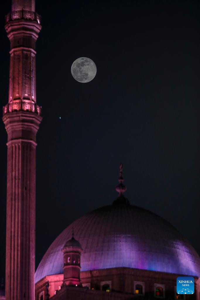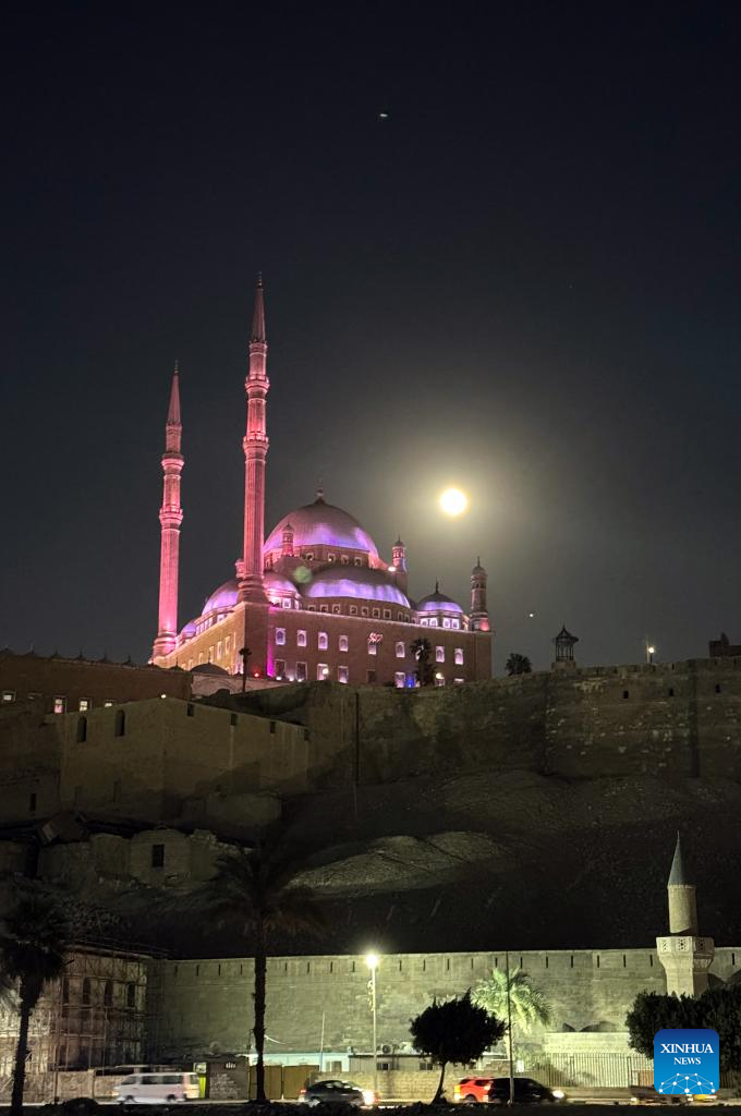 This photo taken on Jan. 3, 2026 shows the super moon above the Saladin Citadel in Cairo, Egypt. (Xinhua/Ahmed Gomaa)