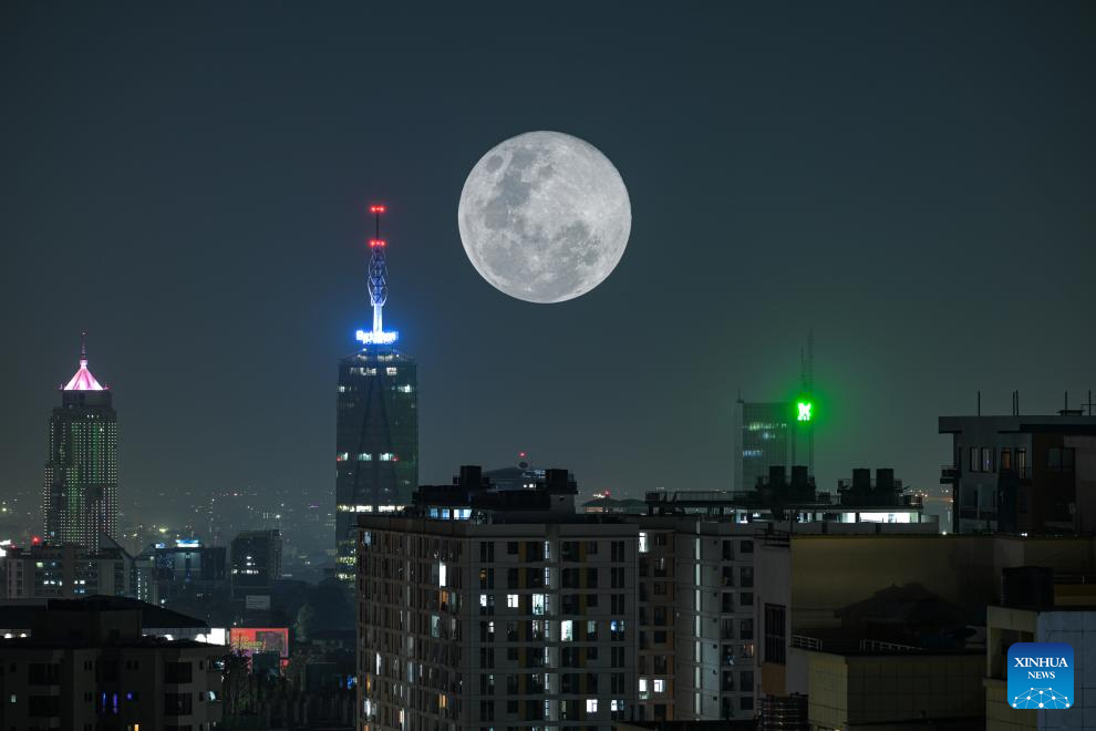 This double-exposure photo taken on Jan. 3, 2026 shows the moon over Nairobi, Kenya. (Xinhua/Yang Guang)