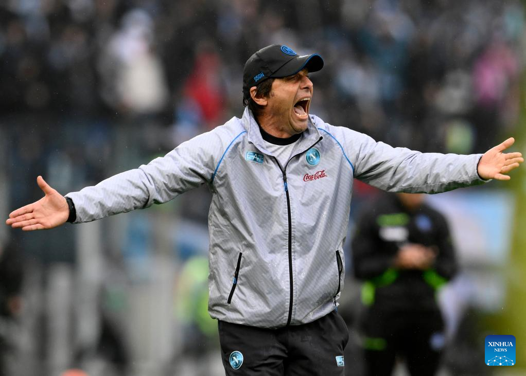 Napoli's head coach Antonio Conte gestures during a Serie A football match between Lazio and Napoli in Rome, Italy, Jan. 4, 2026. (Photo by Augusto Casasoli/Xinhua)