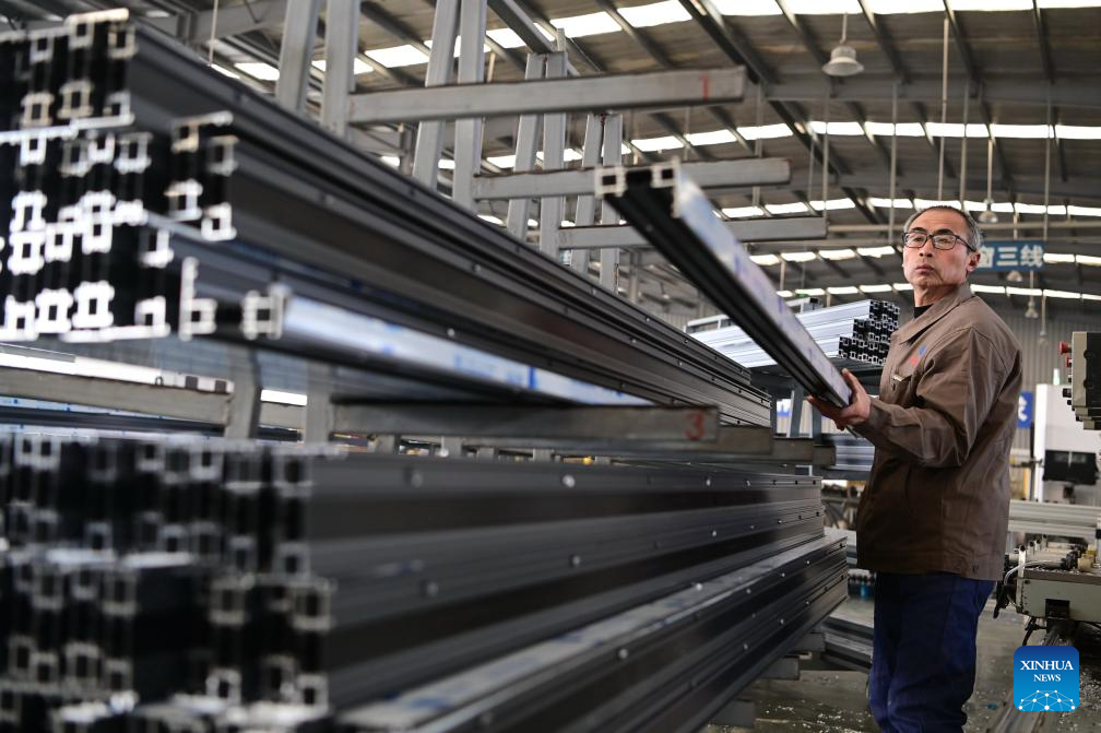 A worker produces aluminum alloy doors and windows at a factory in Qinyang, central China's Henan Province, Jan. 5, 2026. At the start of 2026, businesses across China are already busy fulfilling orders and ramping up production, aiming for a sound performance in the first quarter. (Photo by Yang Fan/Xinhua)