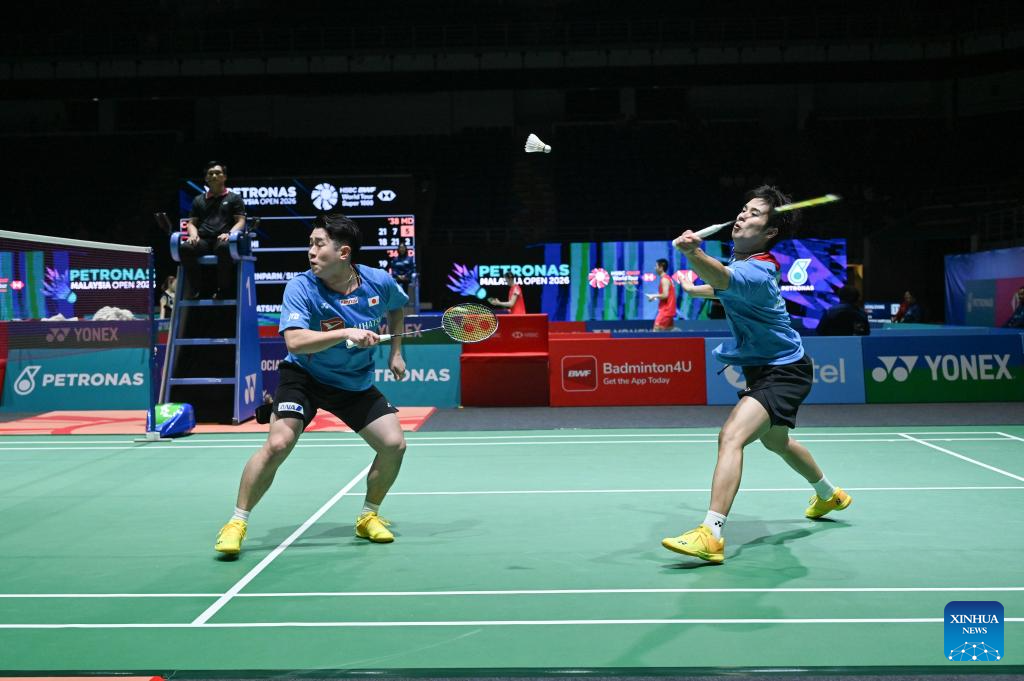 Liang Weikeng (R)/Wang Chang of China compete during the men's doubles round of 32 match against Hoki Takuro/Kobayashi Yugo of Japan at the Malaysia Open 2026 badminton tournament in Kuala Lumpur, Malaysia, Jan. 6, 2026. (Photo by Chong Voon Chung/Xinhua)