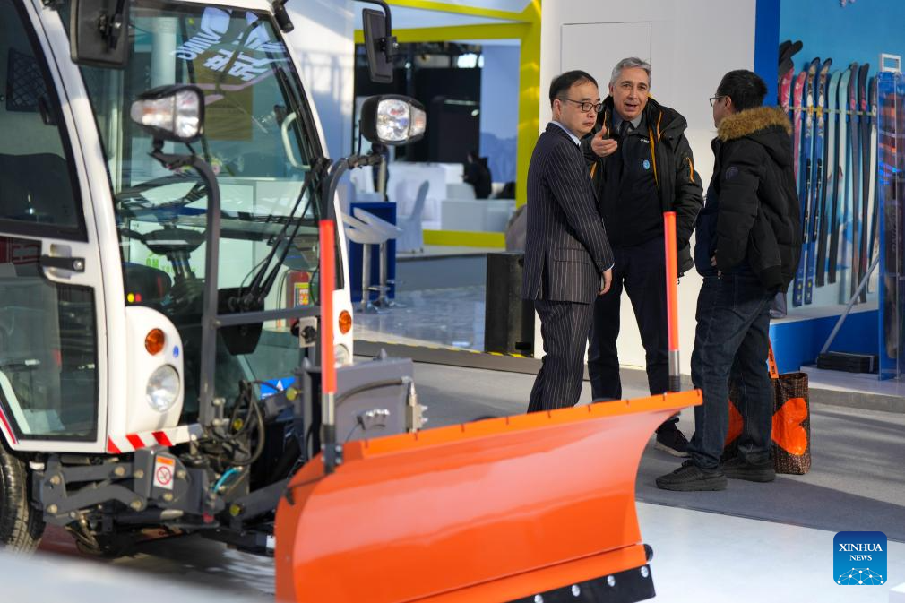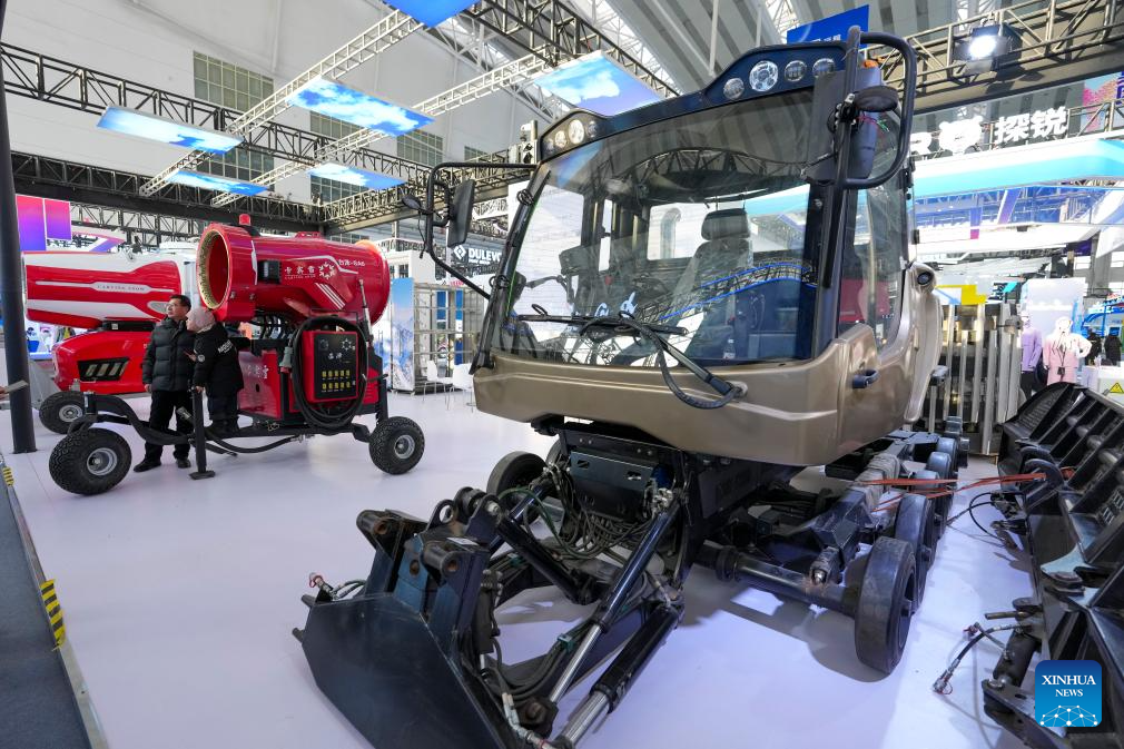 This photo shows a snow removal equipment exhibited at the Harbin International Ice and Snow Economy Expo 2026 in Harbin, northeast China's Heilongjiang Province, Jan. 6, 2026. The three-day expo kicked off here on Tuesday, showcasing cutting-edge achievements of the ice-and-snow industry. (Xinhua/Wang Song)