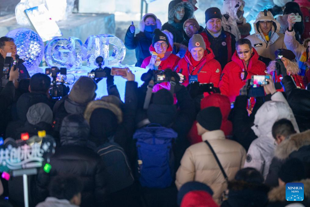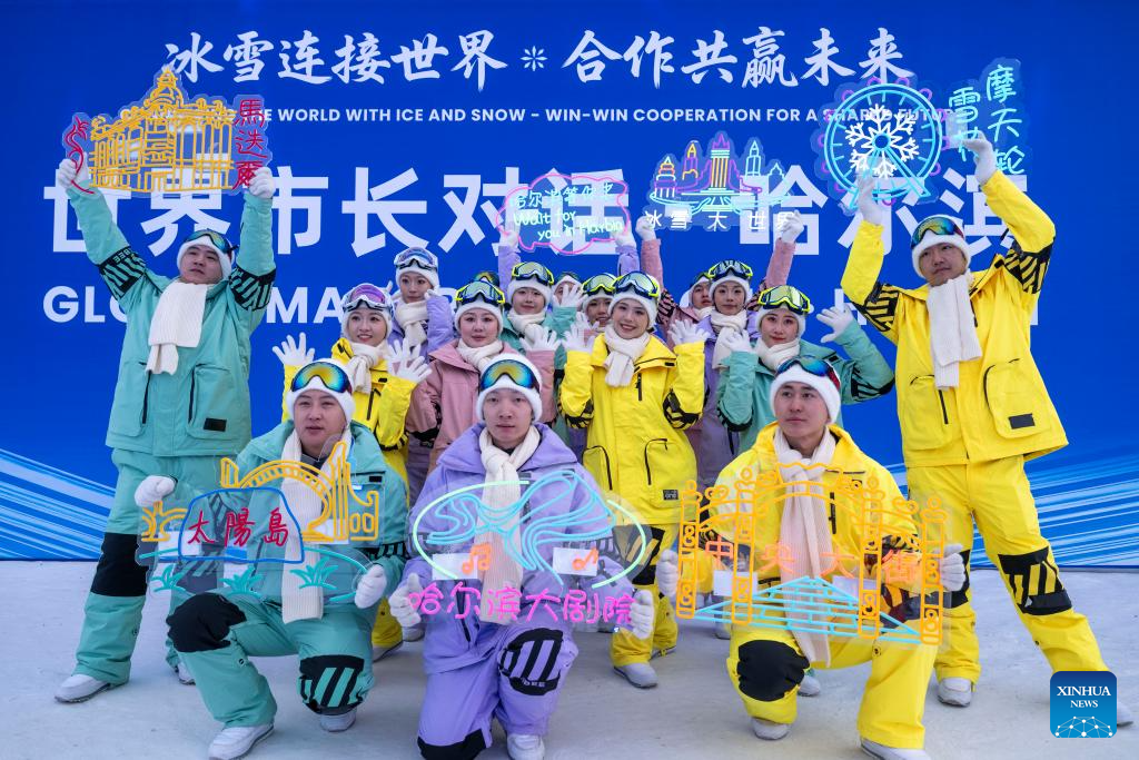 Artists pose for photos at the opening ceremony of the "Global Mayors Dialogue in Harbin" held in Harbin, northeast China's Heilongjiang Province, Jan. 6, 2026. The opening ceremony of the dialogue was held at the Harbin Ice-Snow World here on Tuesday. (Xinhua/Zhang Tao)