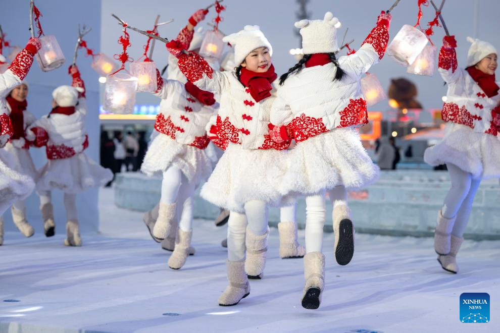 Young artists perform at the opening ceremony of the "Global Mayors Dialogue in Harbin" held in Harbin, northeast China's Heilongjiang Province, Jan. 6, 2026. The opening ceremony of the dialogue was held at the Harbin Ice-Snow World here on Tuesday. (Xinhua/Zhang Tao)