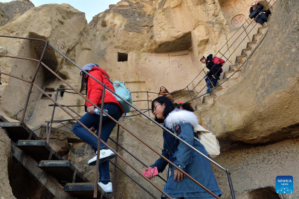 Chinese tourists visit Cappadocia region in Türkiye on Jan. 4, 2026. A new visa-free regime for Chinese citizens is fueling expectations for a tourism boom in Türkiye, as industry operators predict the easier entry will lead to longer stays and deeper cultural ties.(Mustafa Kaya/Handout via Xinhua)