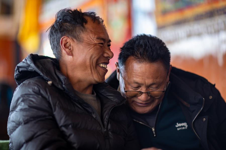 Villagers chat at a sweet tea house in Zimgag Village of Chamco Township, in Dingri County of Xigaze City, southwest China's Xizang Autonomous Region, on Jan. 5, 2026. (Xinhua/Jiang Fan)