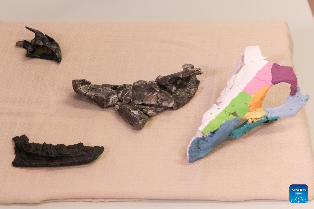 The fossil, attributed to Ajkaceratops Kozmai, was unearthed at the Iharkut (central Hungary) fossil site in the Bakony Mountains and studied by an international research team led by Attila Osi. The research findings were published in the scientific journal Nature. (Photo by Attila Volgyi/Xinhua)