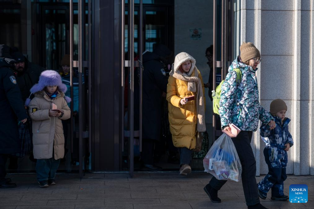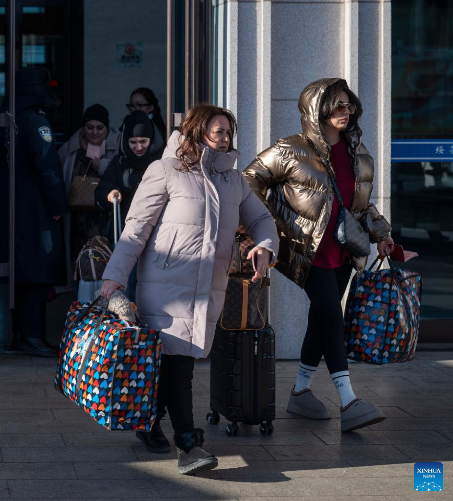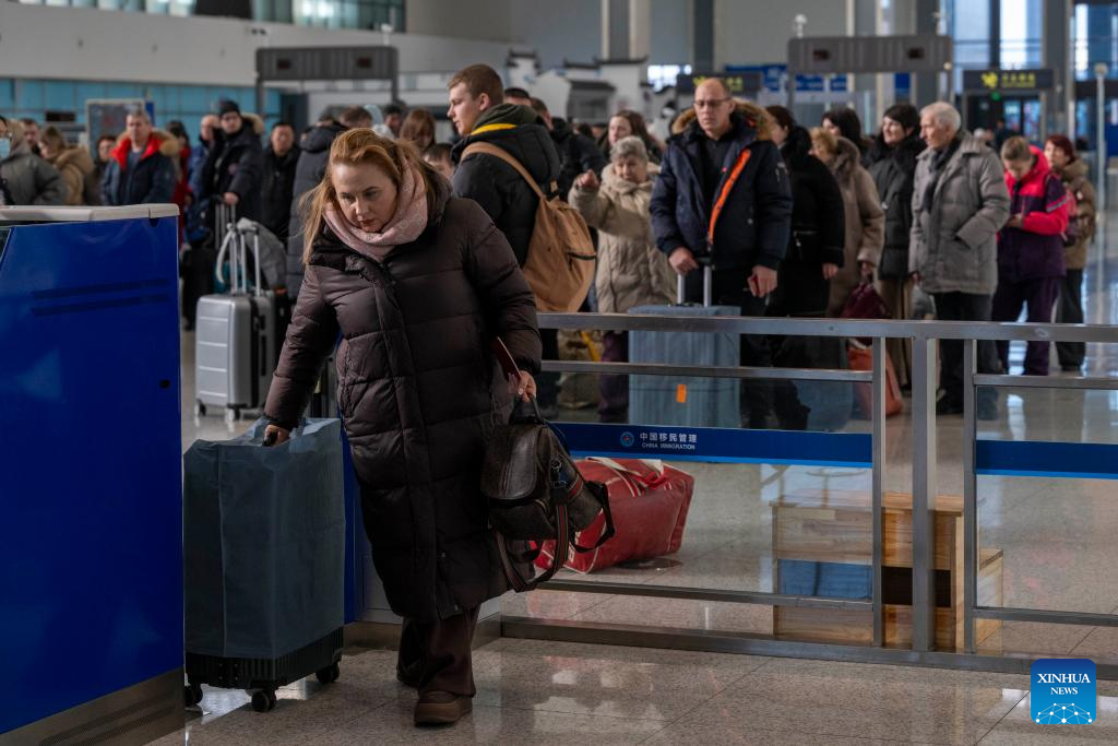 Upon the mutual visa exemption implementation, cross-border tourism has thrived between China and Russia. Statistics show that from Jan. 1 to Jan. 7 of 2026, the number of foreign tourists entering and leaving Suifenhe port reached 10,007, registering an increase of 83 percent year on year. (Xinhua/Zhang Tao)