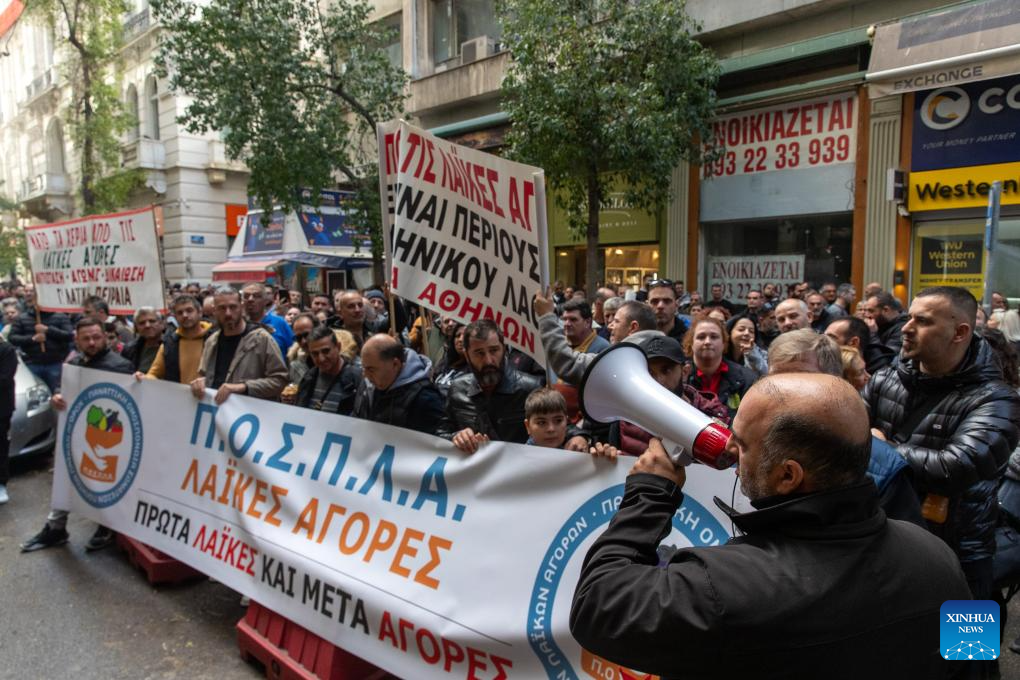 In statements issued by their associations, the vendors said heavy tax burdens imposed at every stage of the distribution chain have significantly driven up prices at open-air markets, placing additional strain on consumers who are already cutting back on spending amid ongoing economic pressures. (Xinhua/Marios Lolos)