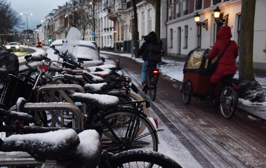 THE HAGUE, Jan. 7 (Xinhua) -- Severe winter weather has caused widespread disruption to air, rail and road traffic across the Netherlands, with hundreds of flights canceled, train services reduced and major roads blocked. Travelers faced delays, while local residents saw their daily routines disrupted.