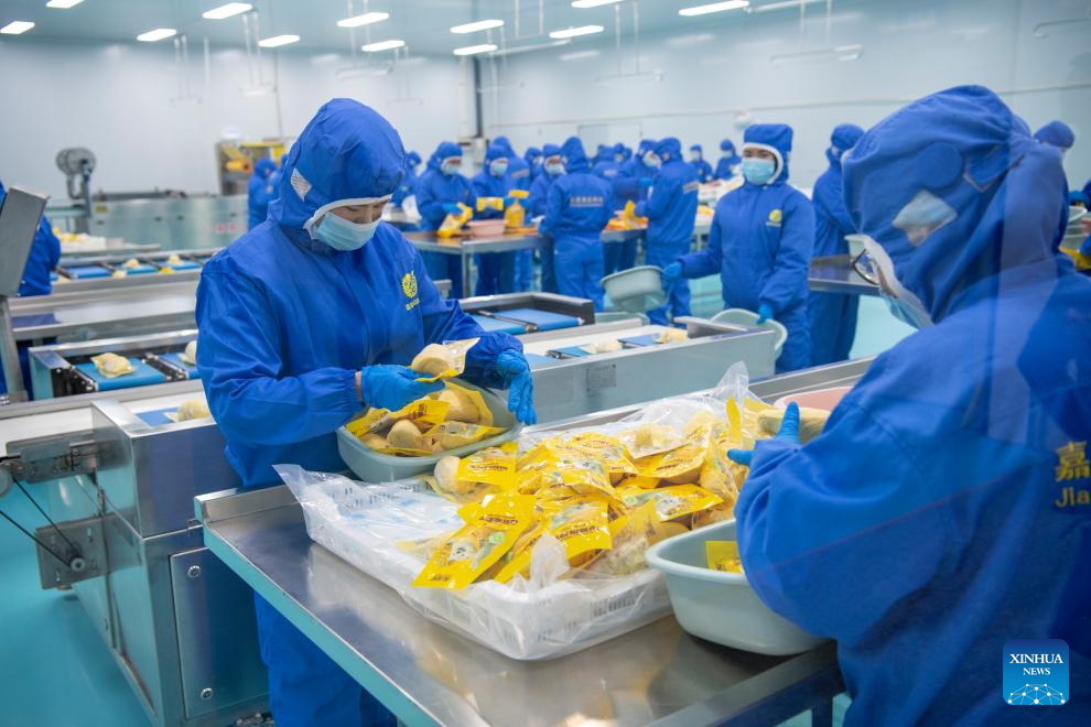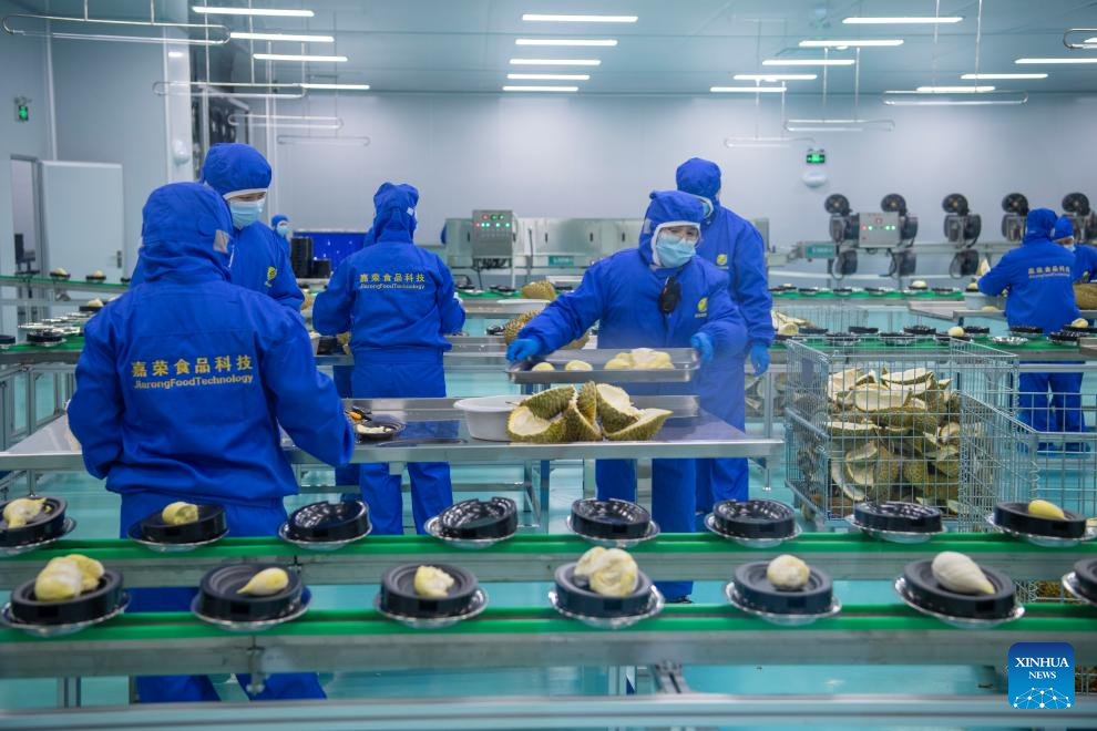 People work at a durian processing enterprise in the Qinzhou comprehensive bonded zone in Qinzhou, south China's Guangxi Zhuang Autonomous Region, Jan. 6, 2026.