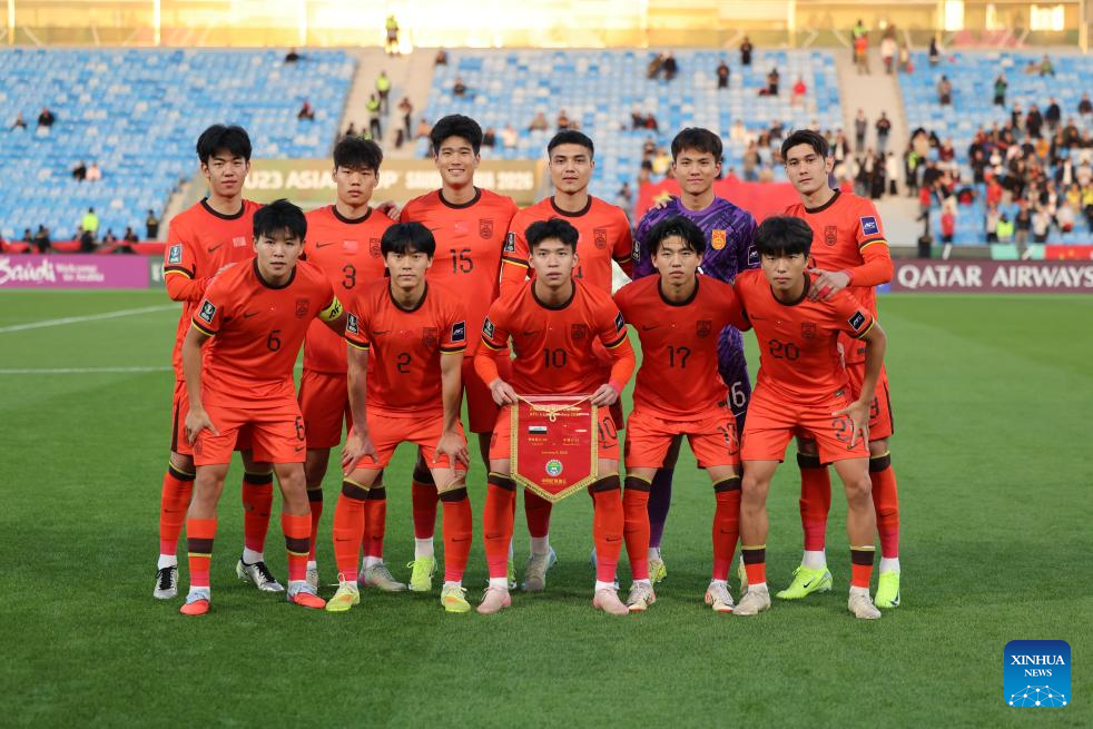 Team China pose before the 2026 AFC U23 Asian Cup group match between China and Iraq in Riyadh, Saudi Arabia, Jan. 8, 2026. (Xinhua/Wang Haizhou)