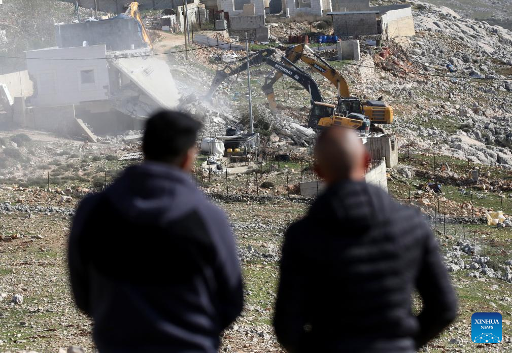 Israeli excavators demolish a house in the Upper Ta'awun area of Nablus in the West Bank on Jan. 8, 2026. (Photo by Nidal Eshtayeh/Xinhua)