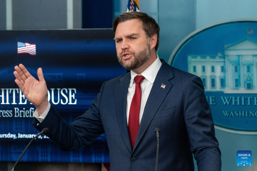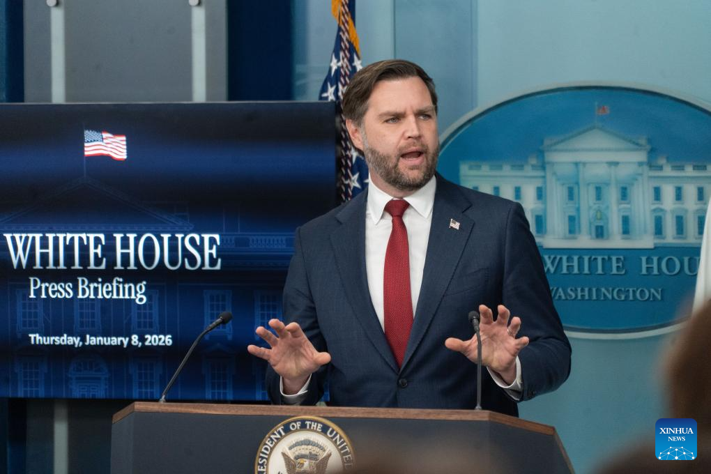 U.S. Vice President JD Vance speaks to reporters during a press briefing at the White House in Washington, D.C., the United States, Jan. 8, 2026.