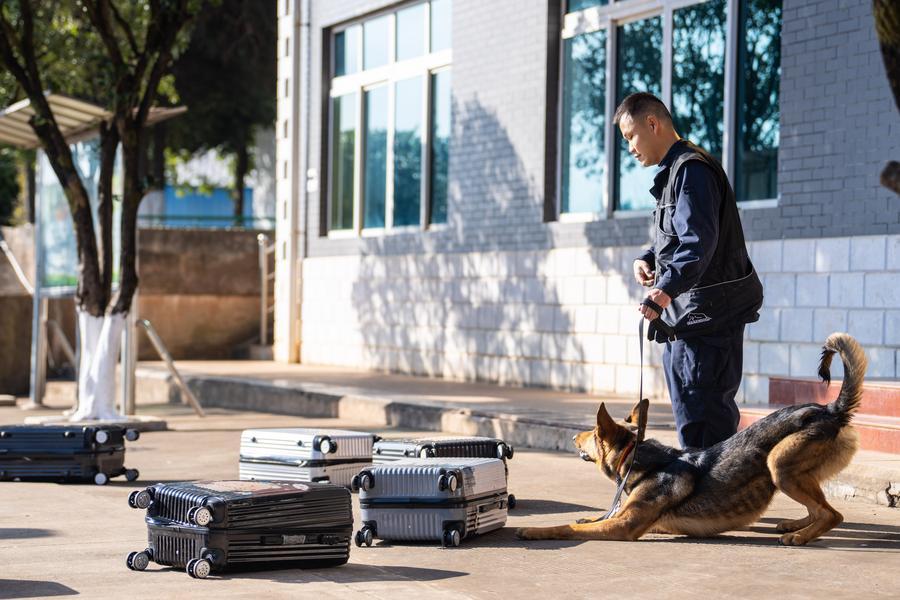 A police dog trainer trains a Kunming dog in explosive detection at the Ministry of Public Security's Kunming police dog base in Kunming, southwest China's Yunnan Province, Dec. 29, 2025. (Xinhua/Gao Yongwei)Kunming dog pups have fun at the Ministry of Public Security's Kunming police dog base in Kunming, southwest China's Yunnan Province, Jan. 5, 2026. (Xinhua/Gao Yongwei)A police dog trainer trains a Malinois dog at the Ministry of Public Security's Kunming police dog base in Kunming, southwest China's Yunnan Province, Jan. 5, 2026. (Xinhua/Jiang Wenyao)Police dog trainers weigh a Kunming dog at the Ministry of Public Security's Kunming police dog base in Kunming, southwest China's Yunnan Province, Jan. 5, 2026. (Xinhua/Gao Yongwei)