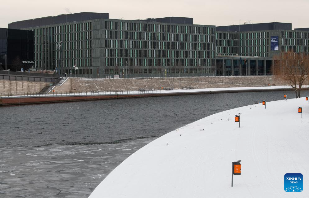 The banks of the Spree River are covered by snow in Berlin, capital of Germany, Jan. 9, 2026. Winter Storm Elli swept across large parts of Germany on Friday, killing at least three people and severely disrupting transport, schools and public services, particularly in the country's north. (Xinhua/Zhang Haofu)
