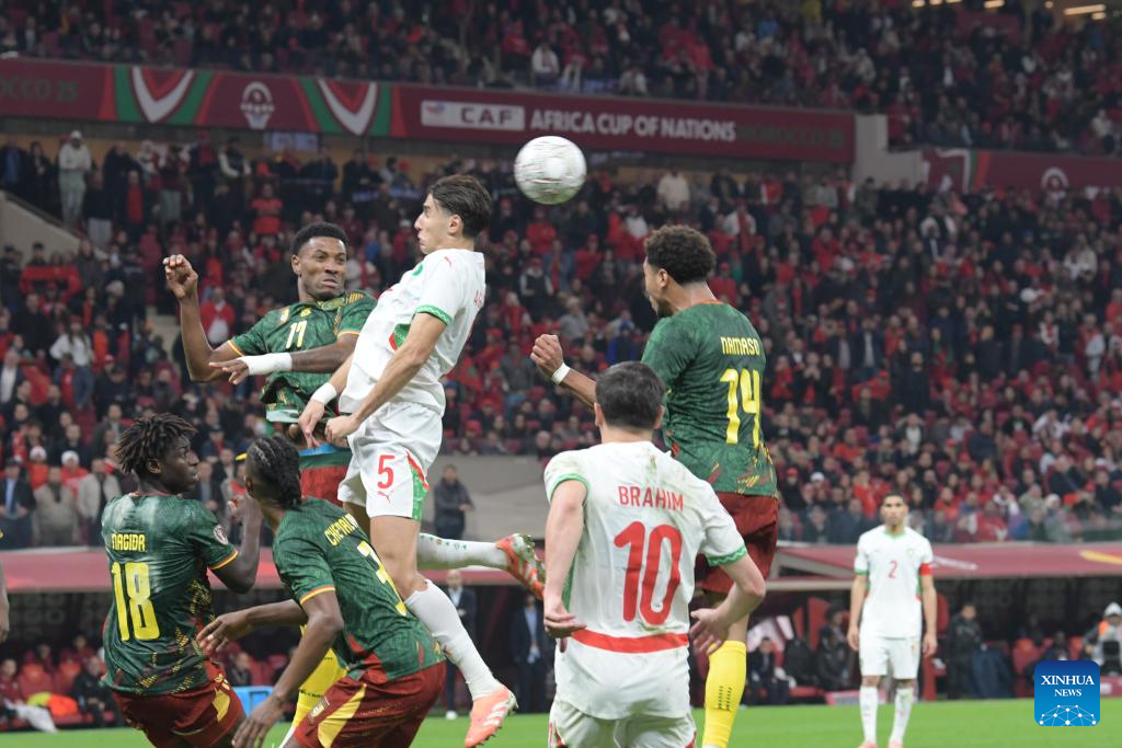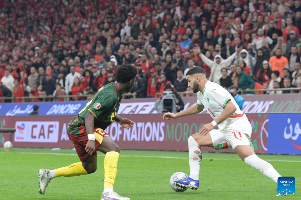 Players compete during the Africa Cup of Nations quarterfinal match between Morocco and Cameroon in Rabat, Morocco, Jan. 9, 2026. (Photo by Aissa/Xinhua)