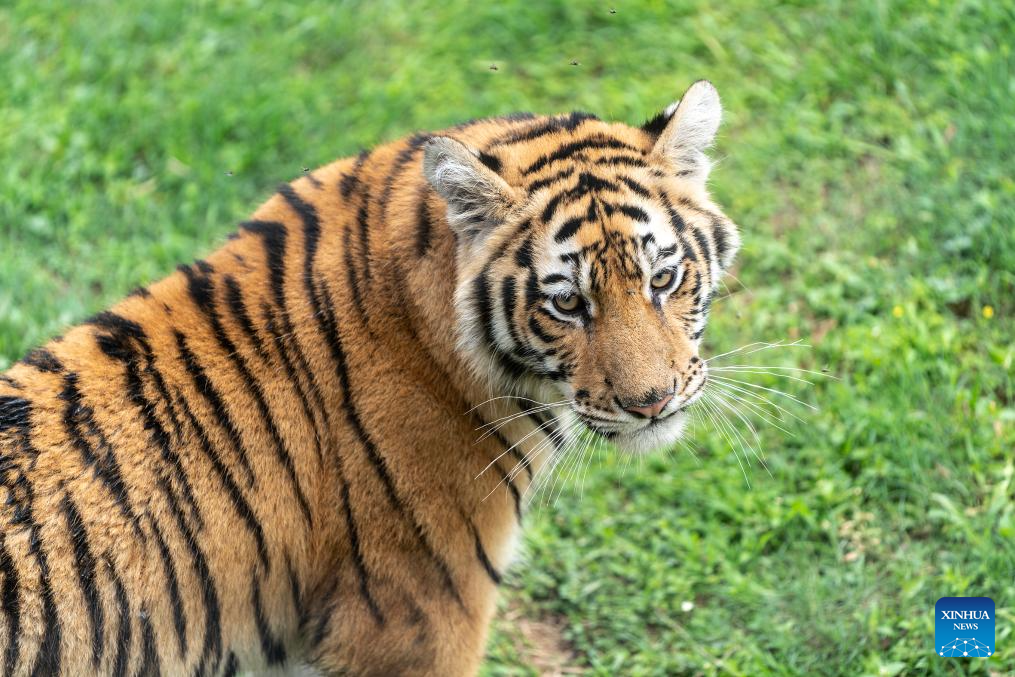An eleven-month-old Bengal tiger cub is seen at the Johannesburg Zoo in Johannesburg, South Africa, on Jan. 9, 2026. Two Bengal tiger cubs were rescued from illegal trade. They made their public debut on Jan. 8. (Photo by Shiraaz Mohamed/Xinhua)