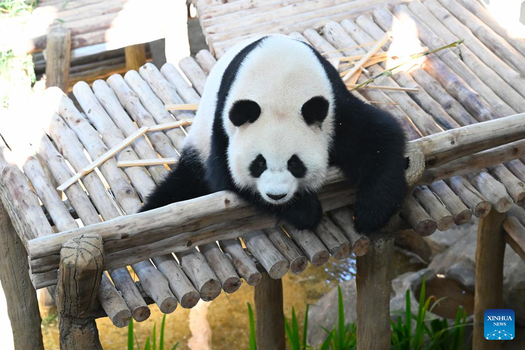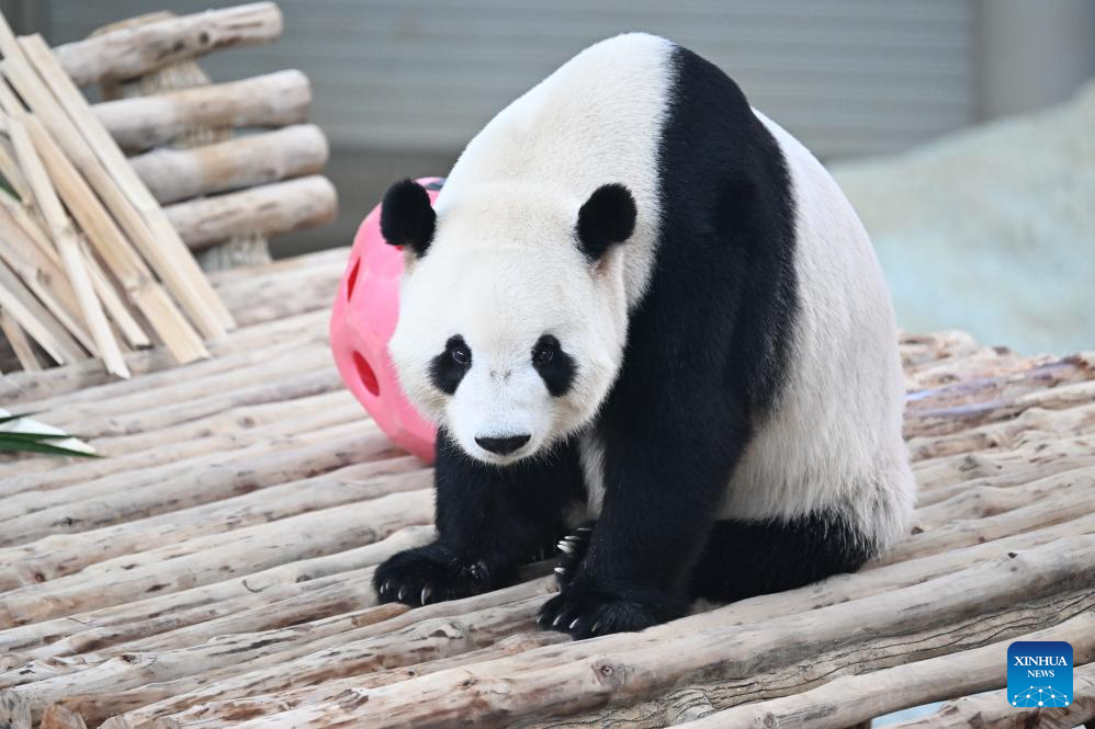 Giant panda "Xiaoyue" is pictured at Zoo Negara in Selangor, Malaysia, on Jan. 10, 2026. China's giant pandas "Chenxing" and "Xiaoyue," currently on loan to Malaysia, officially met the public here on Saturday.(Xinhua/Cheng Yiheng)