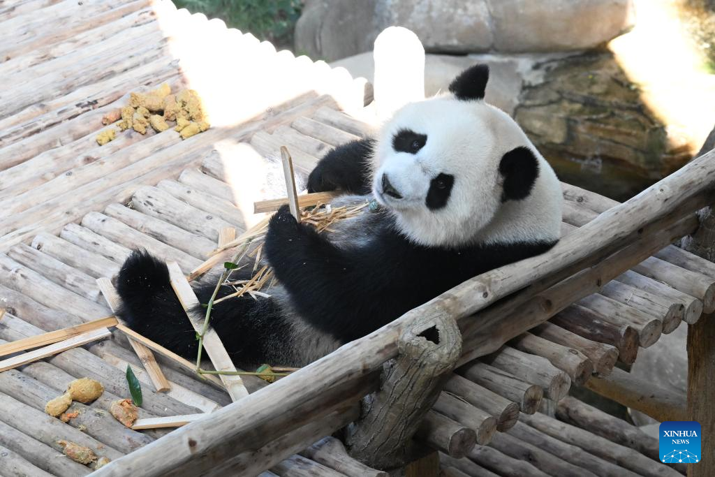 Giant panda "Xiaoyue" is pictured at Zoo Negara in Selangor, Malaysia, on Jan. 10, 2026. China's giant pandas "Chenxing" and "Xiaoyue," currently on loan to Malaysia, officially met the public here on Saturday.(Xinhua/Cheng Yiheng)