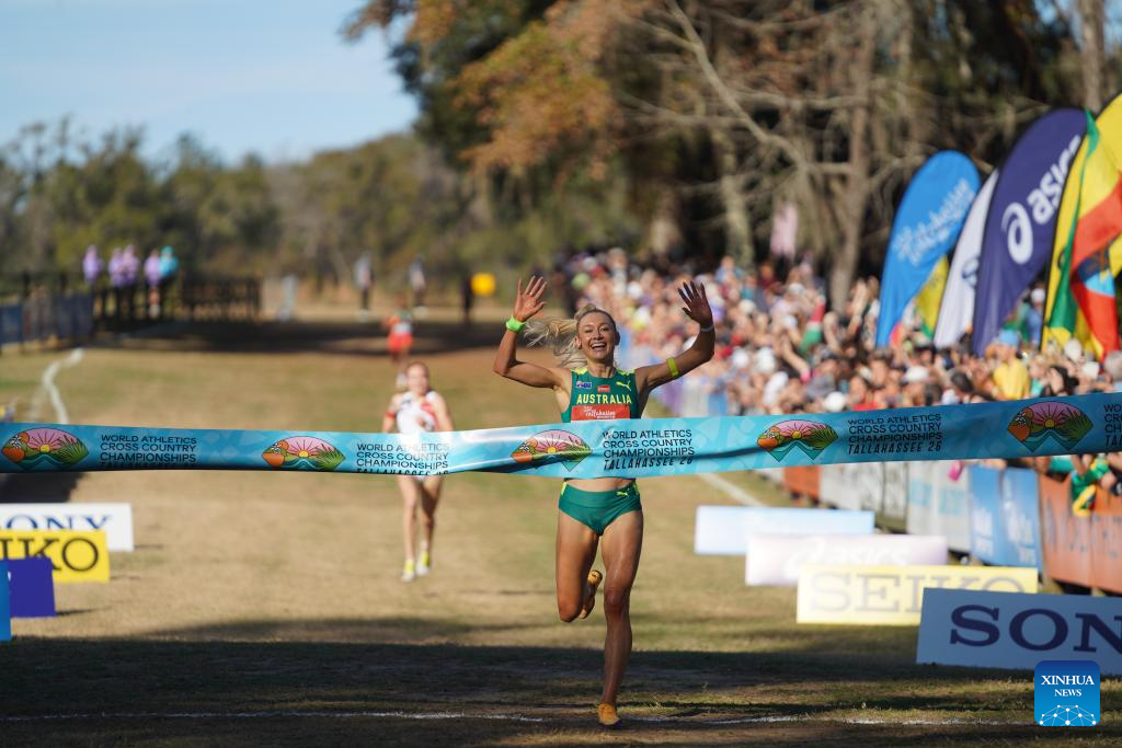 Australia's Jessica Hull crosses the finish line during the Mixed Relay competition at the World Athletics Cross Country Championships 2026 in Tallahassee, Florida, the United States, on Jan 10, 2026. (Xinhua/Zhang Fengguo)