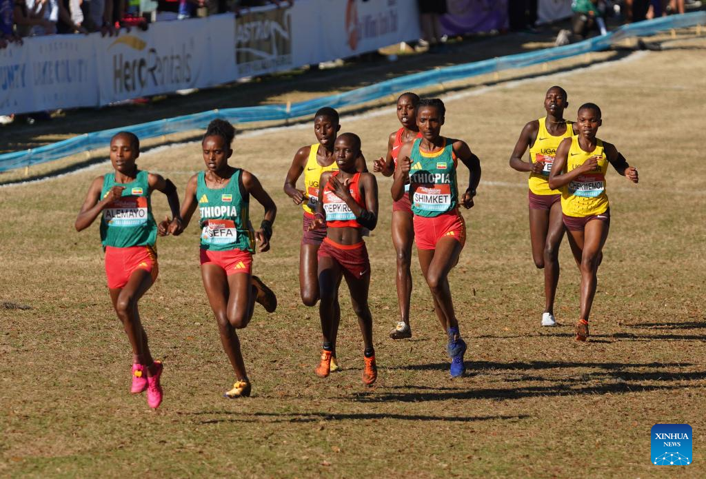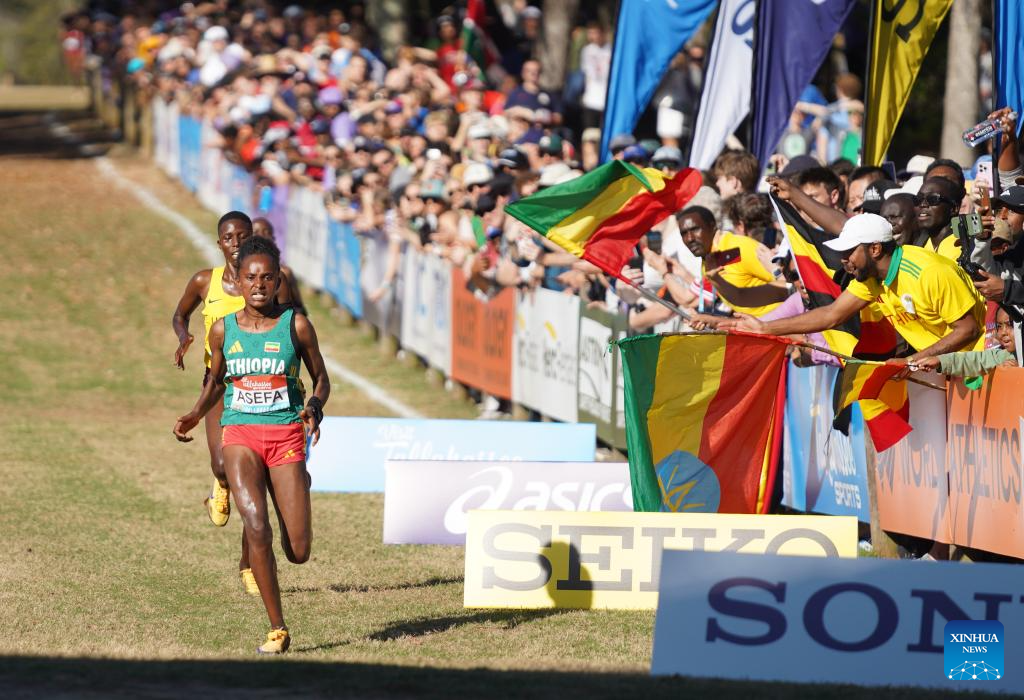 Ethiopia's Wosane Asefa (front) competes during the U20 women's race at the World Athletics Cross Country Championships 2026 in Tallahassee, Florida, the United States, on Jan. 10, 2026. (Xinhua/Zhang Fengguo)