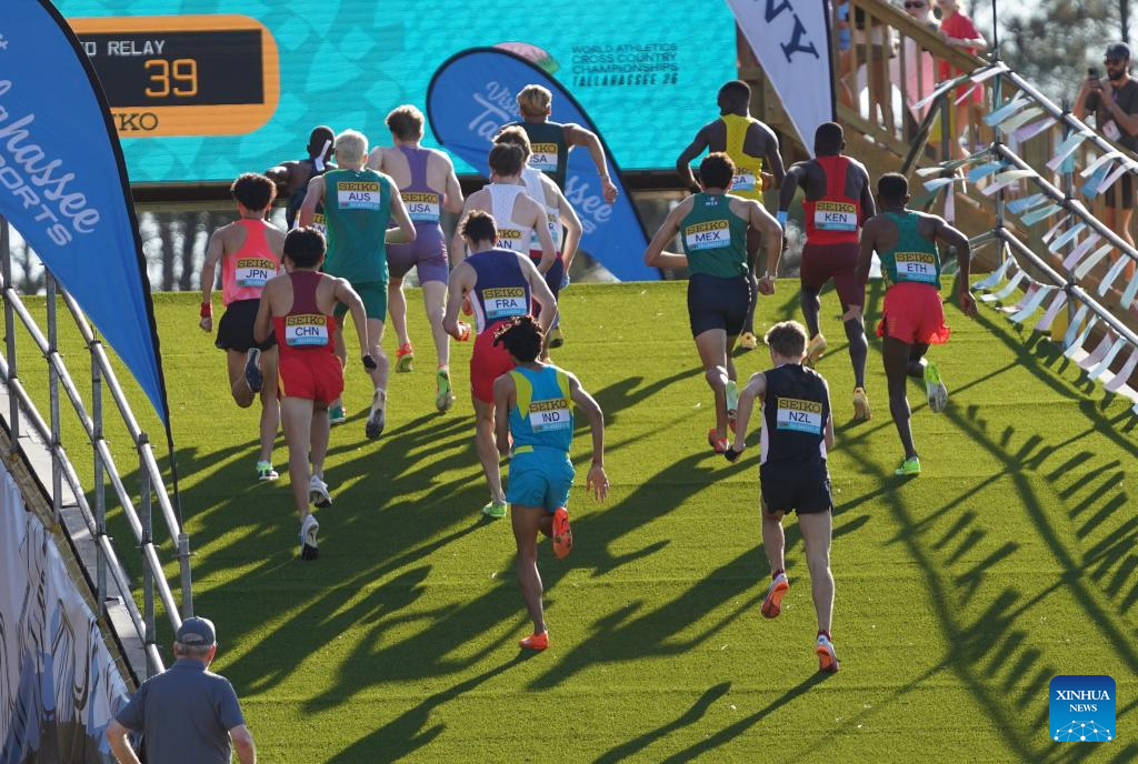 Athletes compete during the Mixed Relay competition at the World Athletics Cross Country Championships 2026 in Tallahassee, Florida, the United States, on Jan 10, 2026. (Xinhua/Zhang Fengguo)