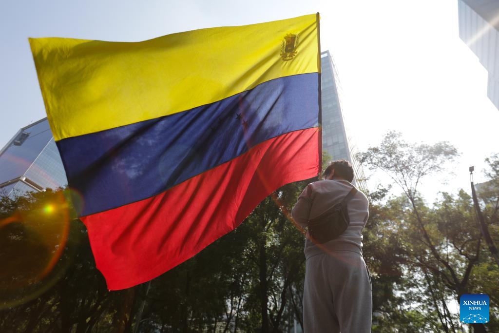 People attend a protest condemning U.S. attack on Venezuela in Mexico City, Mexico, Jan. 10, 2026. (Photo by Francisco Canedo/Xinhua)