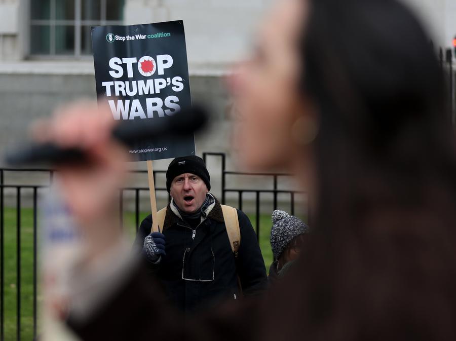 People attend a protest condemning U.S. attack on Venezuela in Rome, Italy, Jan. 10, 2026. (Xinhua/Li Jing)People attend a protest condemning U.S. attack on Venezuela in Rome, Italy, Jan. 10, 2026. (Xinhua/Li Jing)A woman holds a placard during a protest condemning U.S. attack on Venezuela in Rome, Italy, Jan. 10, 2026. (Xinhua/Li Jing)People attend a protest condemning U.S. attack on Venezuela in Rome, Italy, Jan. 10, 2026. (Xinhua/Li Jing)A man holds a placard while listening to a speech during a protest condemning U.S. attack on Venezuela outside No. 10 Downing Street in London, Britain, Jan. 10, 2026. (Xinhua/Li Ying)A demonstrator waves Venezuelan national flag during a protest condemning U.S. attack on Venezuela outside No. 10 Downing Street in London, Britain, Jan. 10, 2026. (Xinhua/Li Ying)A placard is seen during a protest condemning U.S. attack on Venezuela outside No. 10 Downing Street in London, Britain, Jan. 10, 2026. (Xinhua/Li Ying)A placard is seen during a protest condemning U.S. attack on Venezuela outside No. 10 Downing Street in London, Britain, Jan. 10, 2026. (Xinhua/Li Ying)Demonstrators hold placards during a protest condemning U.S. attack on Venezuela outside No. 10 Downing Street in London, Britain, Jan. 10, 2026. (Xinhua/Li Ying)■