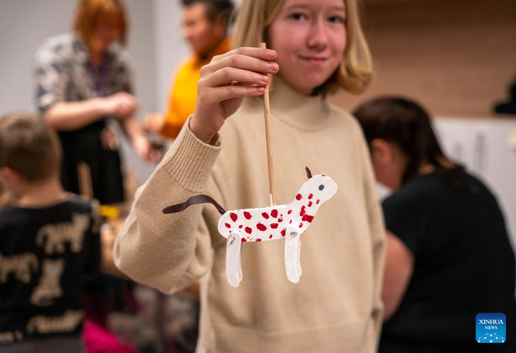 A girl shows the puppet she made at the Museum of Prague in Prague, the Czech Republic, Jan. 10, 2026. The Museum of Prague held a family-oriented event on Jan. 10, featuring a puppet show about a garbage collector's daily work and hands-on puppet-making activities to promote sustainable practices. (Photo by Dana Kesnerova/Xinhua)