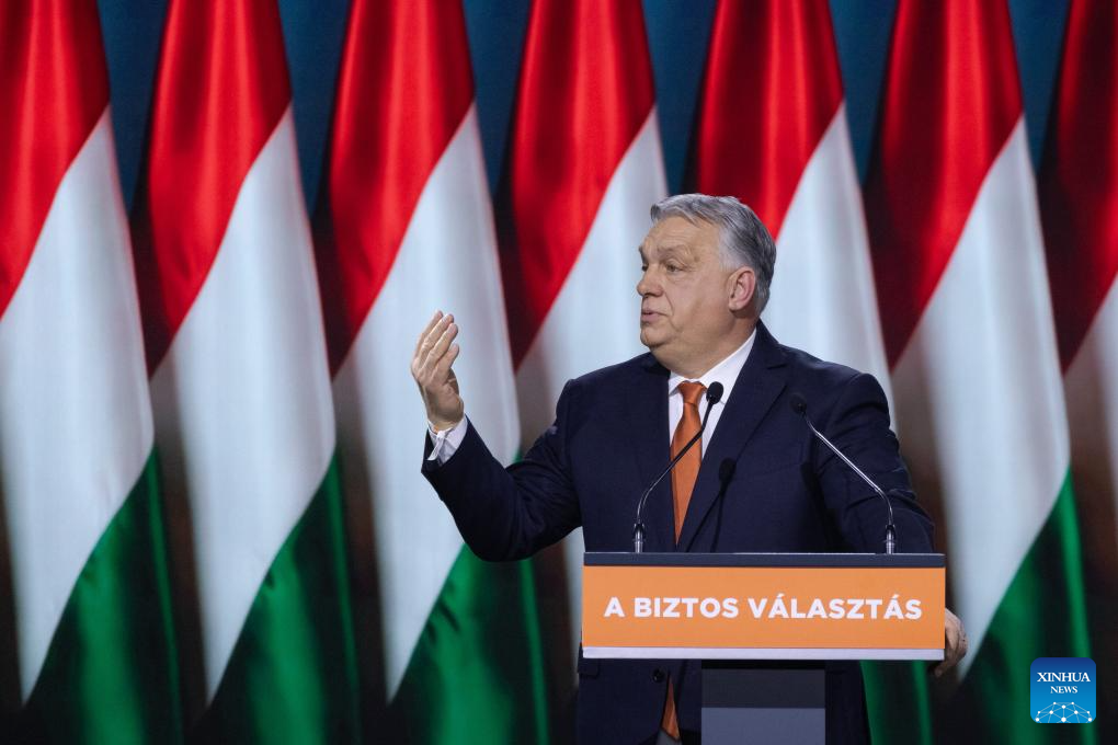 Hungarian Prime Minister Viktor Orban speaks at the Fidesz party's 31st congress in Budapest, Hungary, Jan. 10, 2026. Orban said on Jan. 10 that he is ready to lead the ruling party alliance in the upcoming parliamentary election. (Photo by Attila Volgyi/Xinhua)