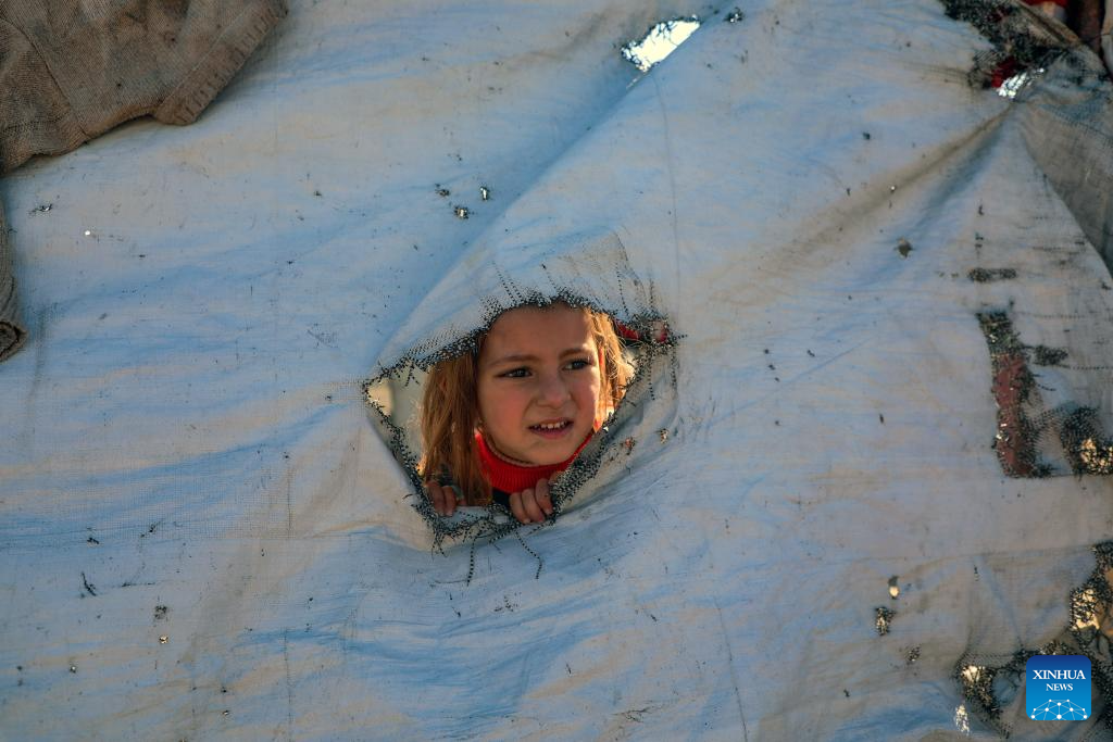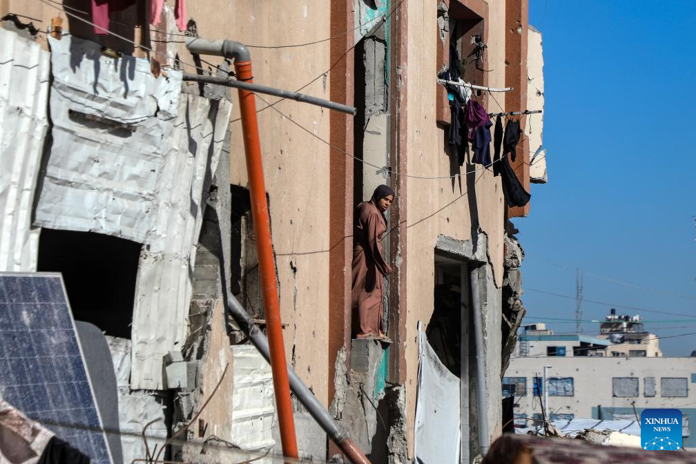 A displaced Palestinian is seen at a temporary shelter near a landfill in Gaza City, on Jan. 11, 2026. (Photo by Rizek Abdeljawad/Xinhua)