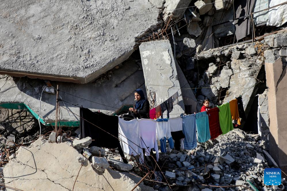 Displaced Palestinians are pictured at a temporary shelter near a landfill in Gaza City, on Jan. 11, 2026. (Photo by Rizek Abdeljawad/Xinhua)