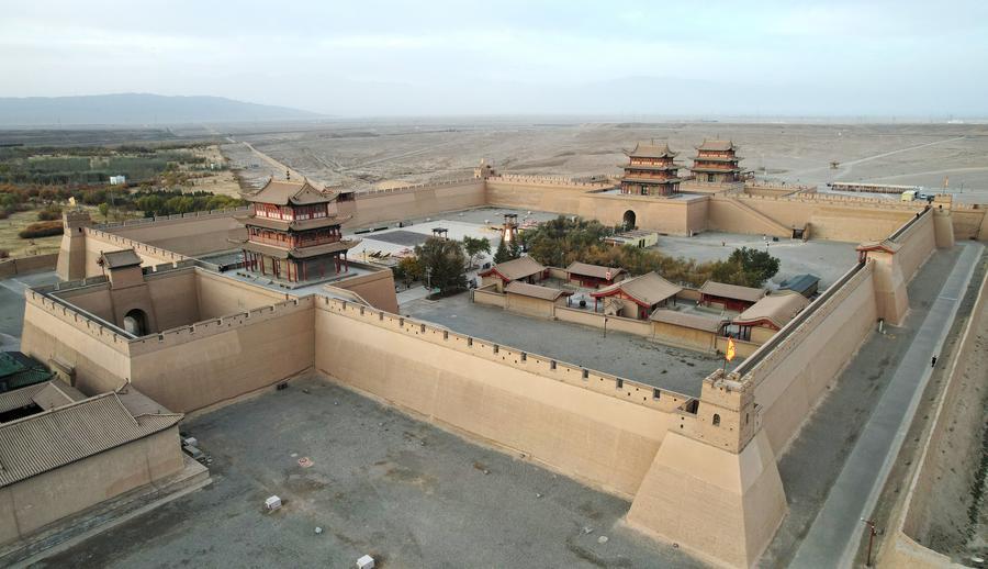 LANZHOU, Jan. 13, 2026 (Xinhua) -- Jiayu Pass, located in northwest China's Gansu Province, is the starting point of a Ming Dynasty (1368-1644) section of the Great Wall. For over 600 years, the pass safeguarded diplomats, merchants, and other travelers along the Silk Road. Today, the ancient and once battle-scarred fortress stands as a thriving symbol of civilization.