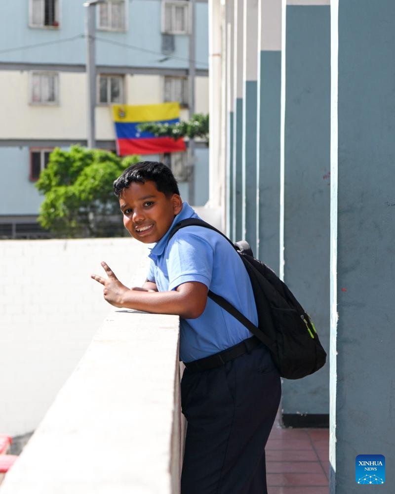 A student poses for a photo during a class break on the first day of the new semester in a public school in Caracas, Venezuela, Jan. 12, 2026. The second half of the 2025-2026 academic year for primary and secondary education began on Monday in Venezuela. (Xinhua/Ding Hongfa)