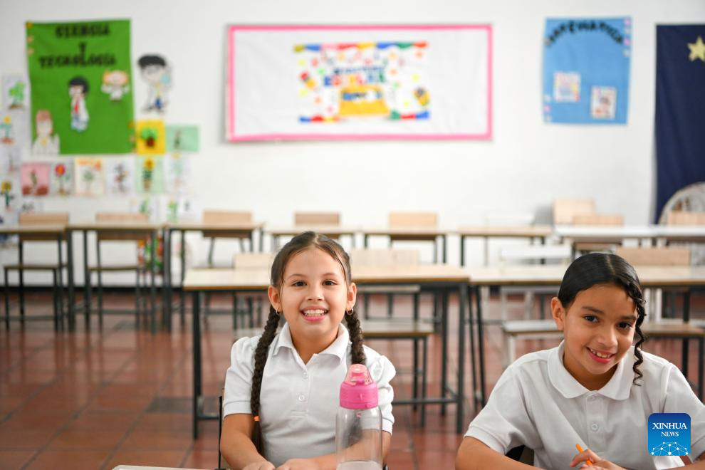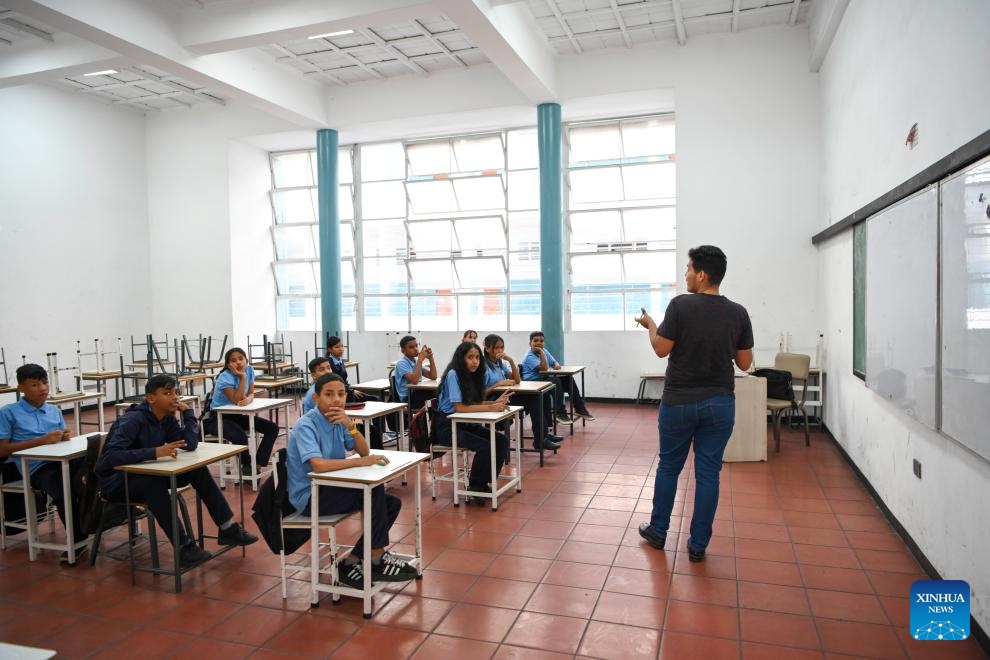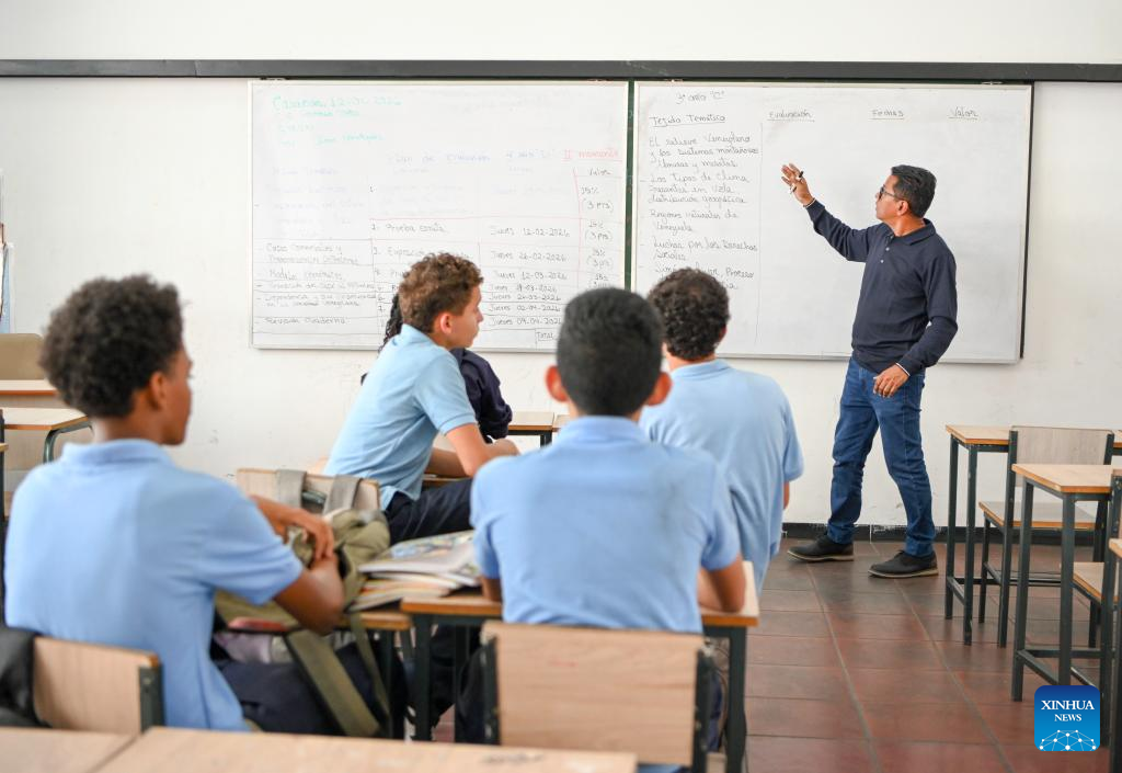 Students attend a class on the first day of the new semester in a public school in Caracas, Venezuela, Jan. 12, 2026. The second half of the 2025-2026 academic year for primary and secondary education began on Monday in Venezuela. (Xinhua/Ding Hongfa)