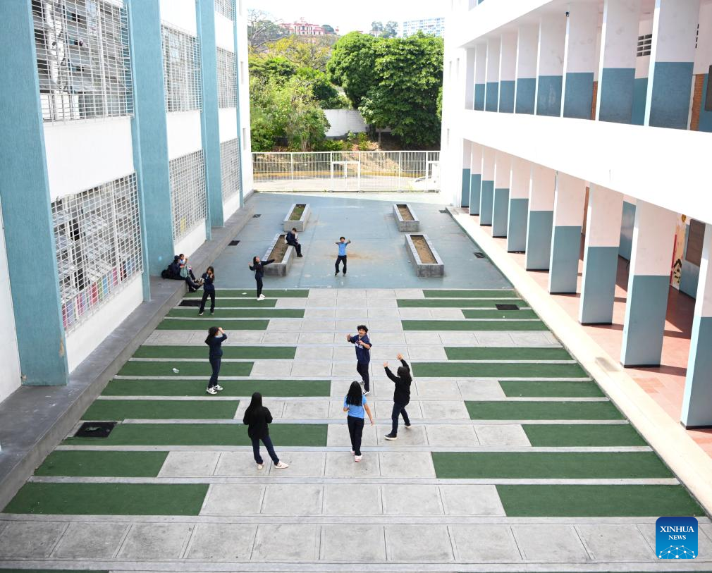 Students take a break on the first day of the new semester in a public school in Caracas, Venezuela, Jan. 12, 2026. The second half of the 2025-2026 academic year for primary and secondary education began on Monday in Venezuela. (Xinhua/Ding Hongfa)