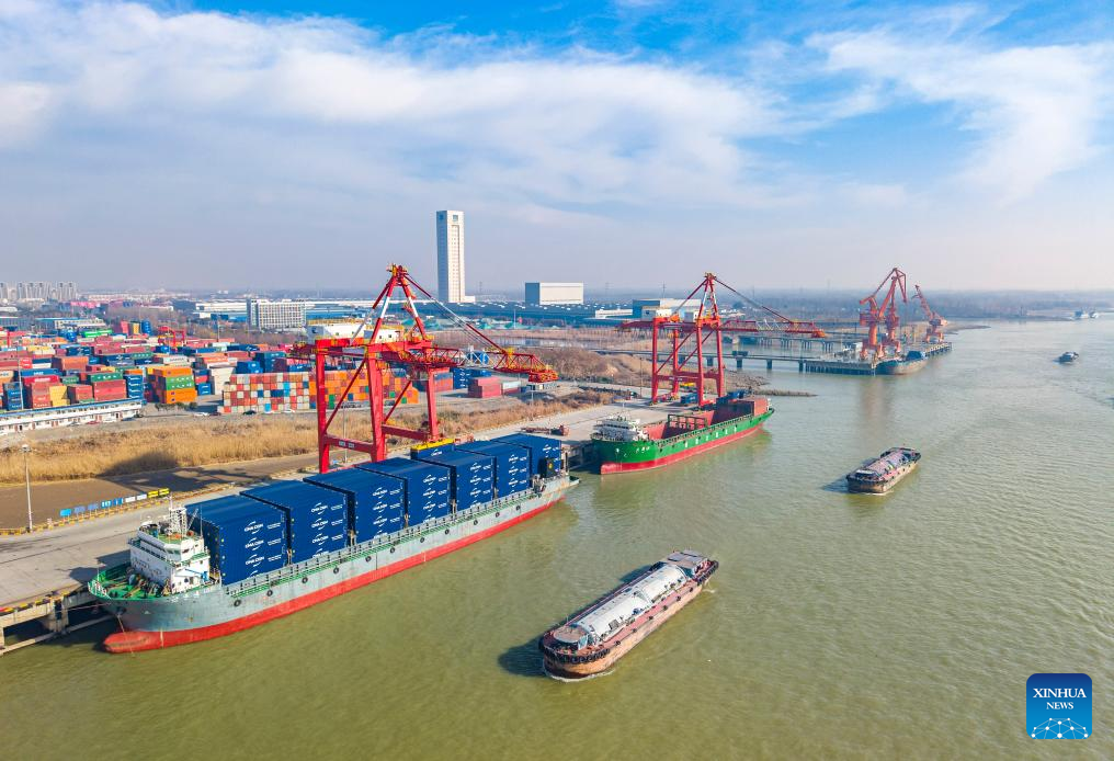 This photo taken on Jan. 14, 2026 shows a view of the Longtan Container Terminal at Nanjing Port, east China's Jiangsu Province. (Photo by Xin Yi/Xinhua)
