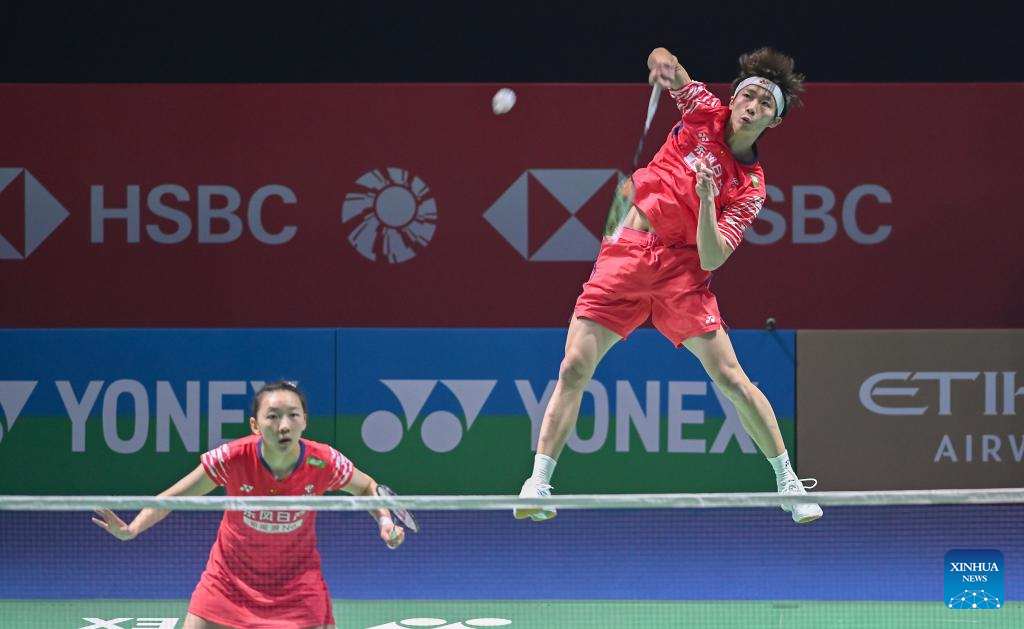 Jiang Zhenbang (L)/Wei Yaxin of China compete during the mixed doubles 1/16 final match against Presley Smith/Jennie Gai of the United States at the India Open 2026 in New Delhi, India, Jan. 14, 2026. (Xinhua/Javed Dar)