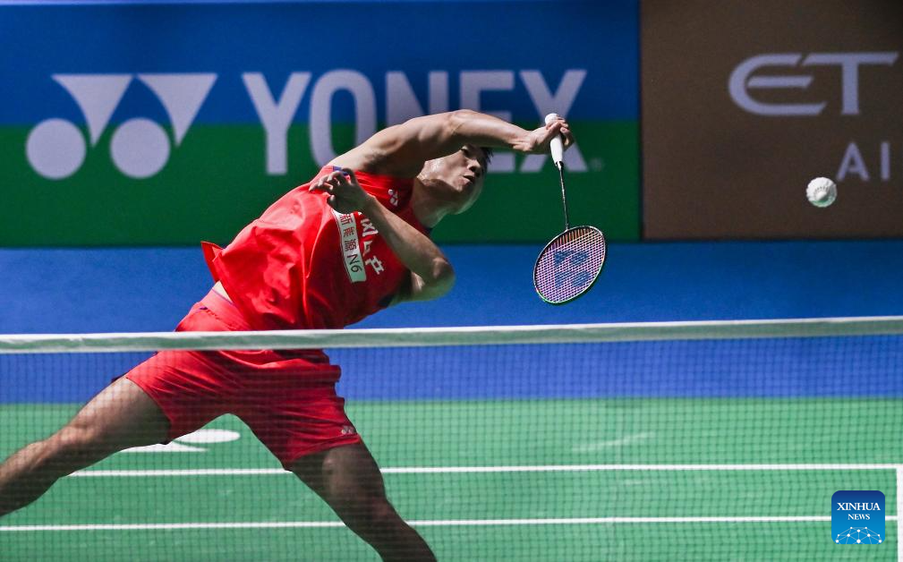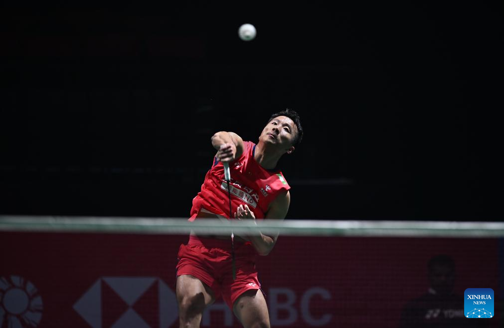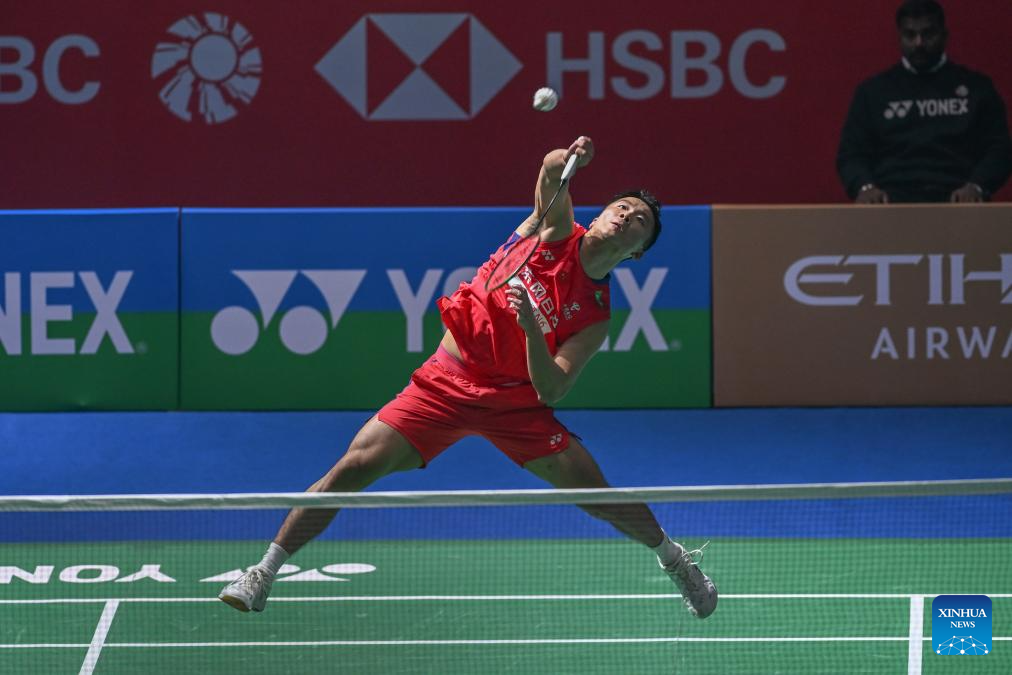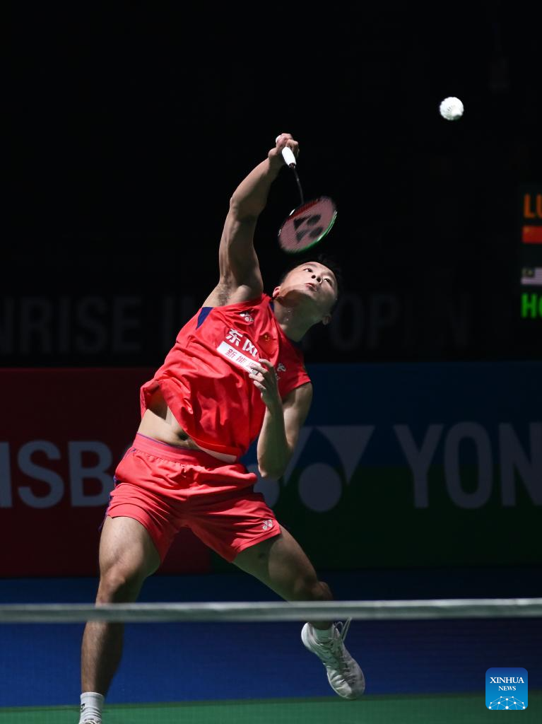 Lu Guangzu of China competes during the men's singles 1/16 final match against Justin Hoh of Malaysia at the India Open 2026 in New Delhi, India, Jan. 14, 2026. (Xinhua/Javed Dar)